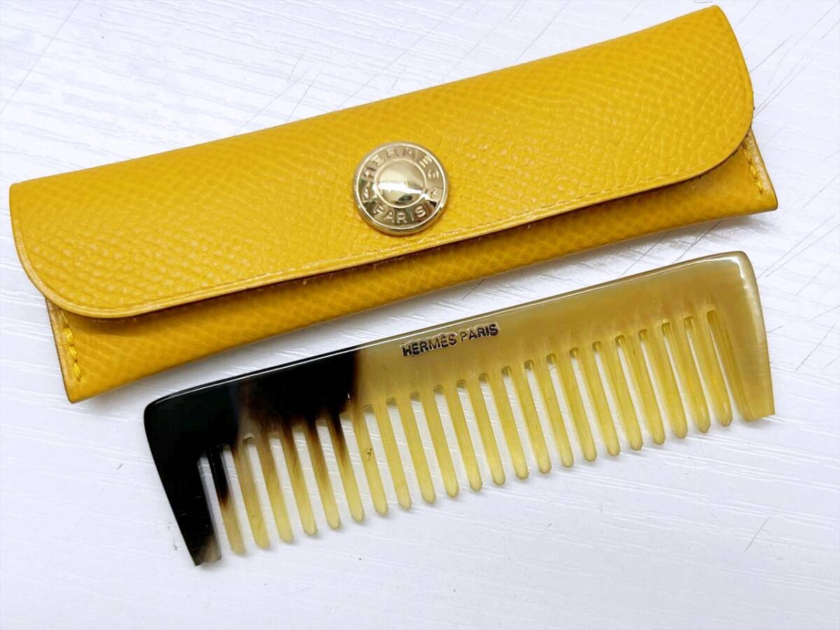 美品 HERMES エルメス バッファローホーン コーム 櫛 くし セリエ レザーケース付き