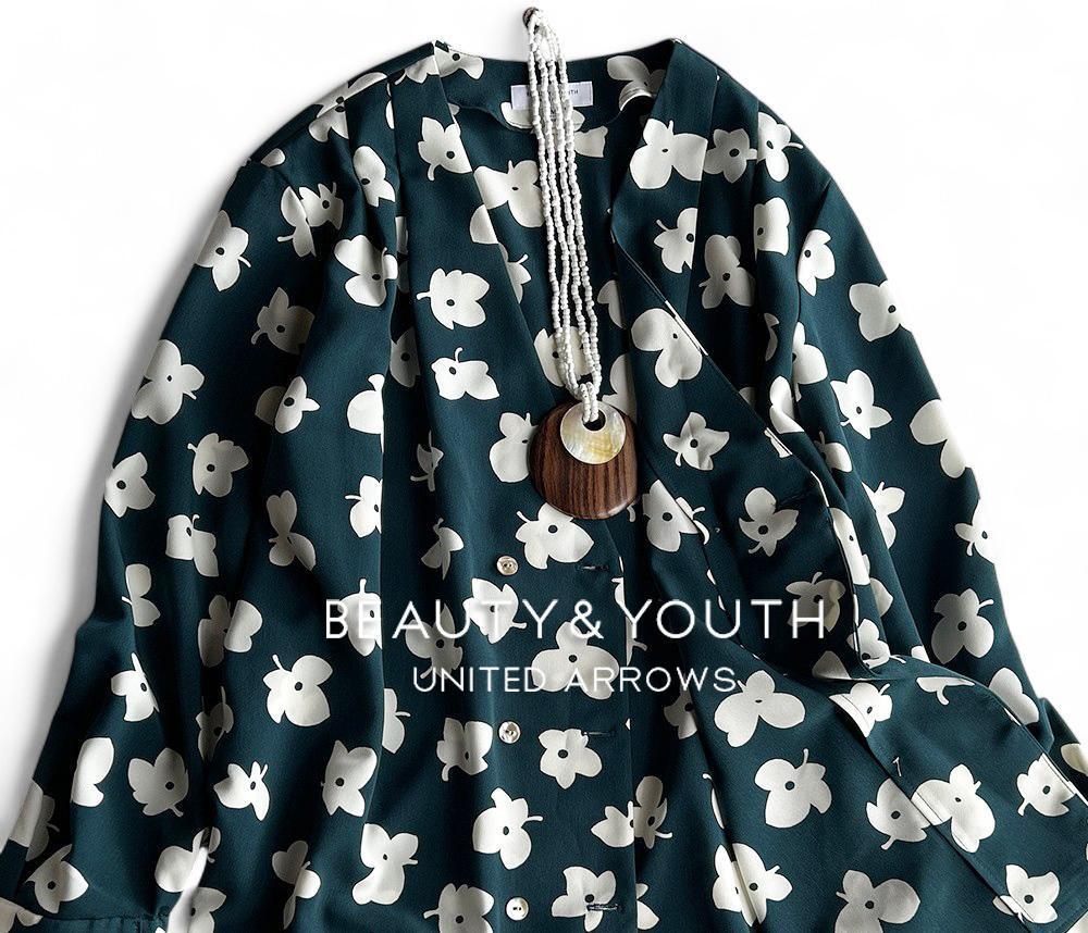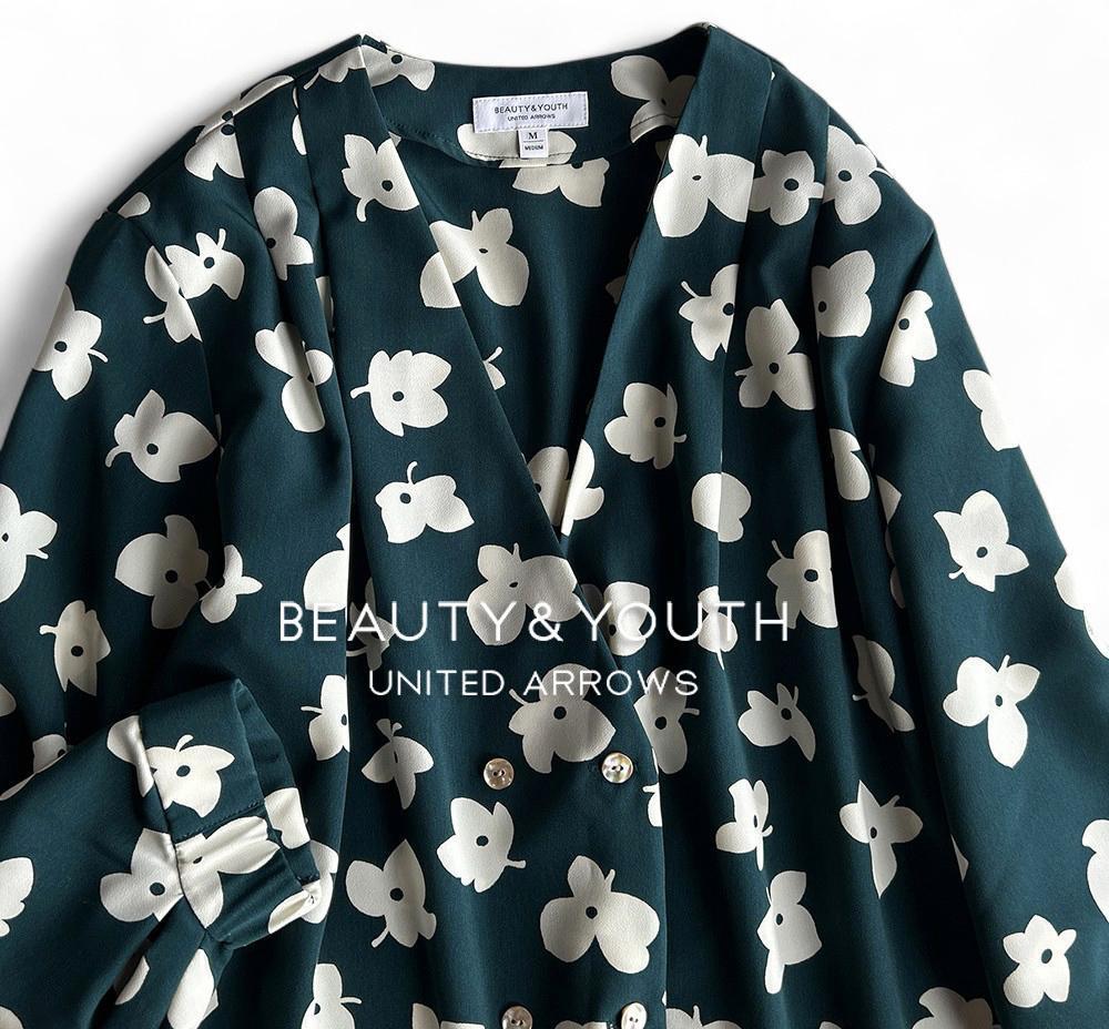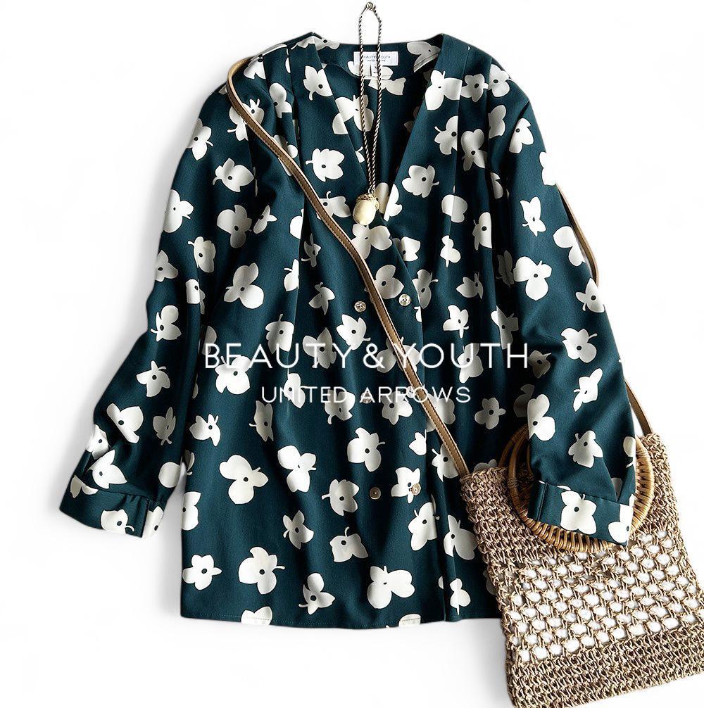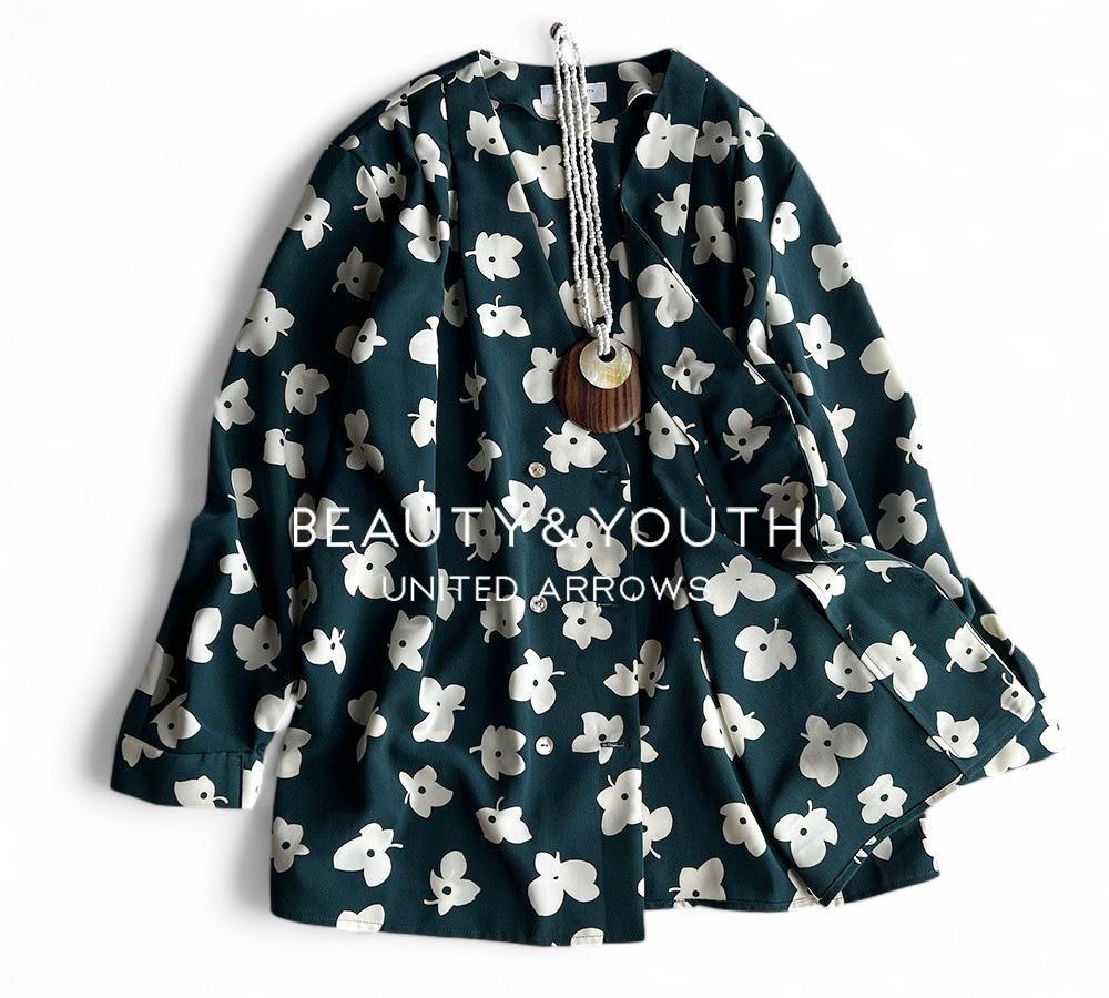 ☆ユナイテッドアローズBEAUTY&YOUTH☆ ノーカラーのダブルボタンで仕上げたブラウスとしてもジャケットとしても活用いただけるアイテム。グリーンを基調に白のフラワープリント。 今すぐから秋へと長く着まわしていただけます。 ★素材・・・ポリエステル100% ★サイズ・・38 着丈63 肩幅39 身幅54 袖丈51 ★状態・・・目立った傷や汚れなし | ||