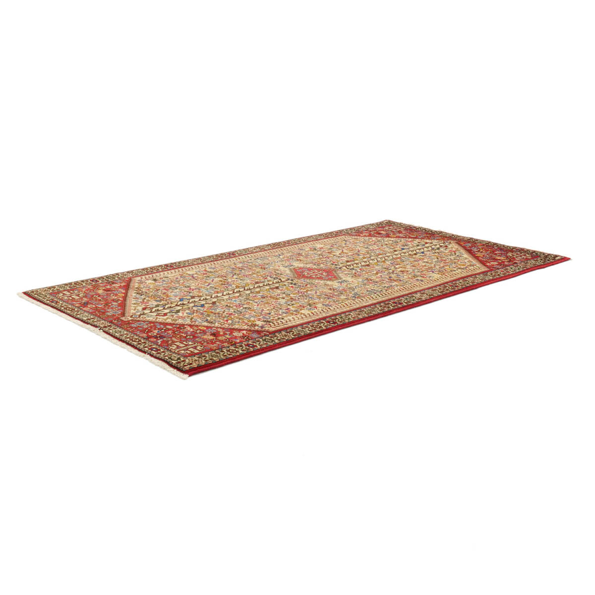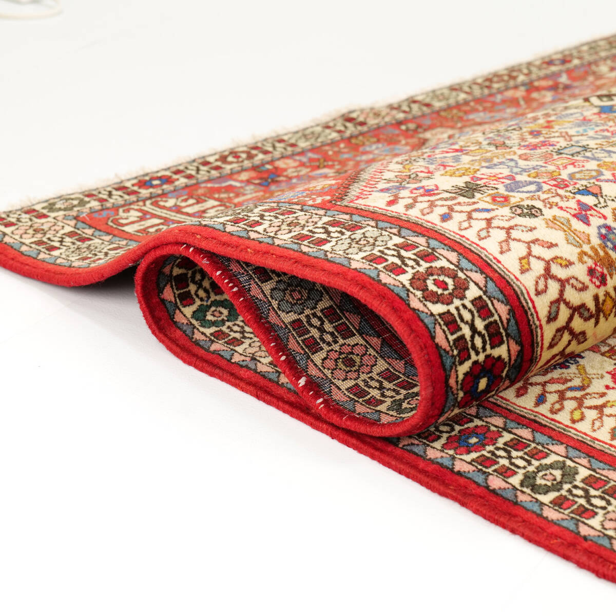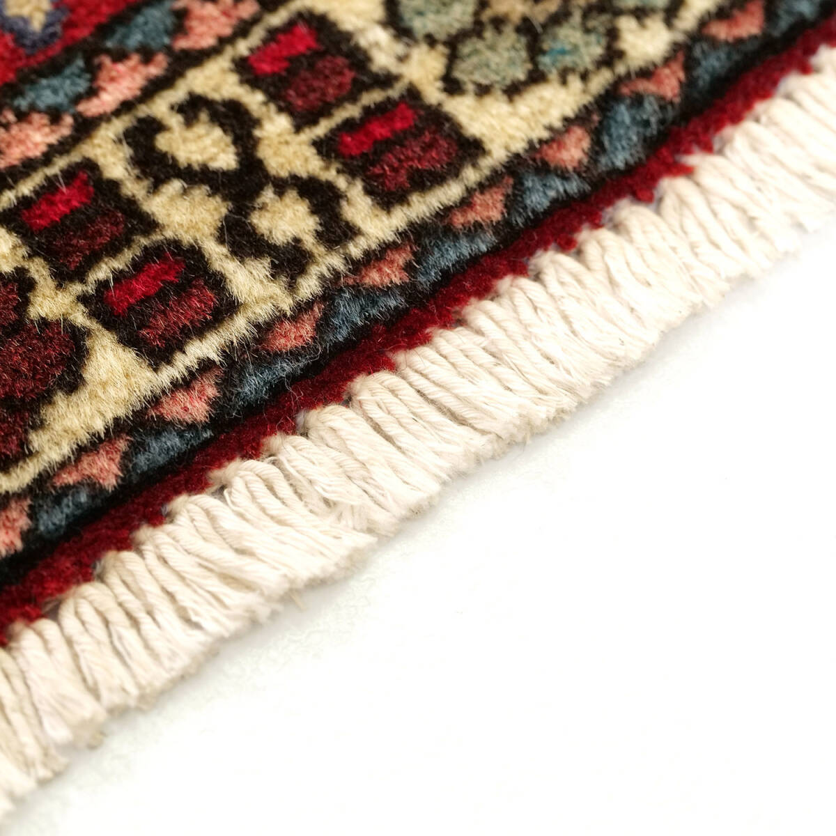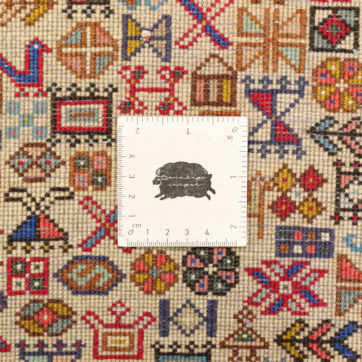 この絨毯のデザインは、古来より「成長」や「繁栄」を象徴する生命の樹を中心に据え、幾何学的な植物文様や抽象的なシンボルが細密に並び、まるで一枚の織物の中にアバデの物語が詰まっているかのようです。