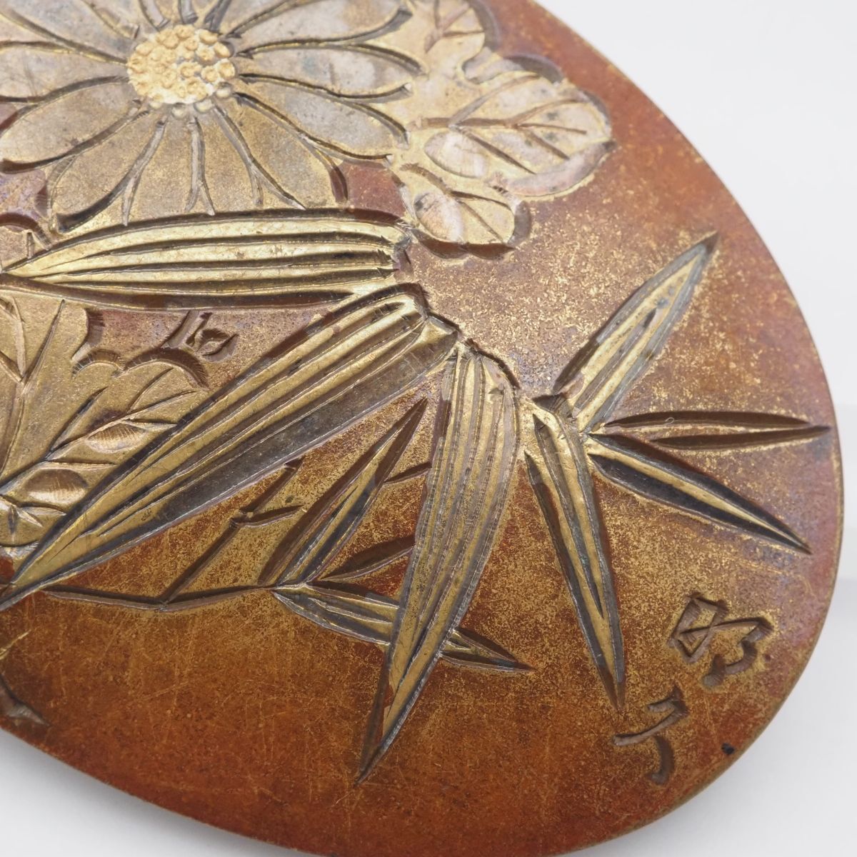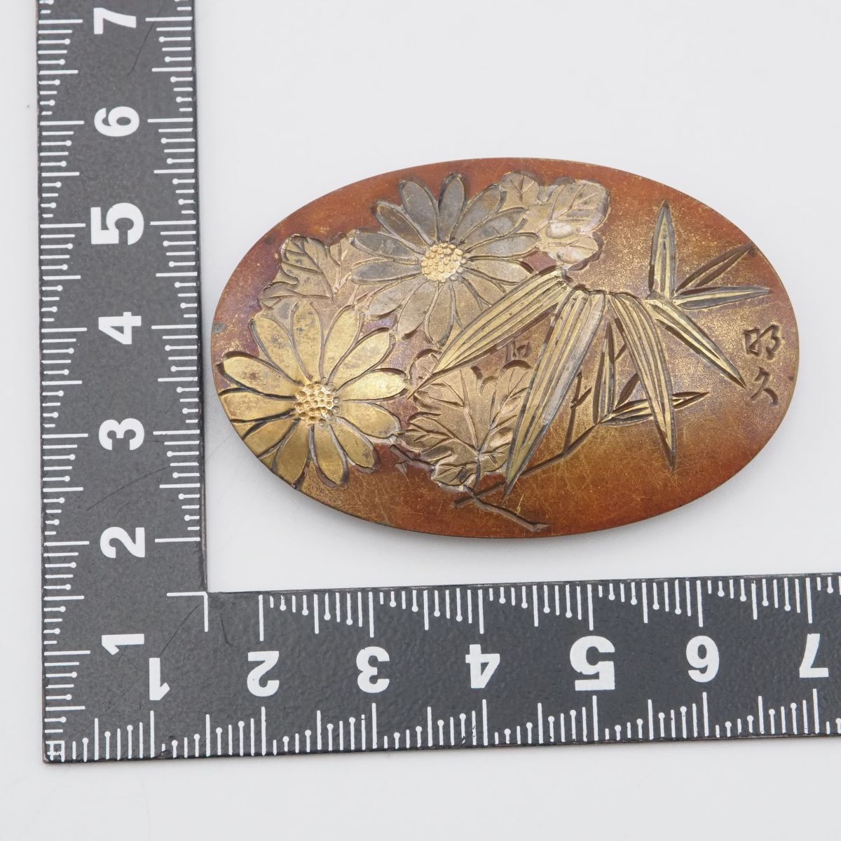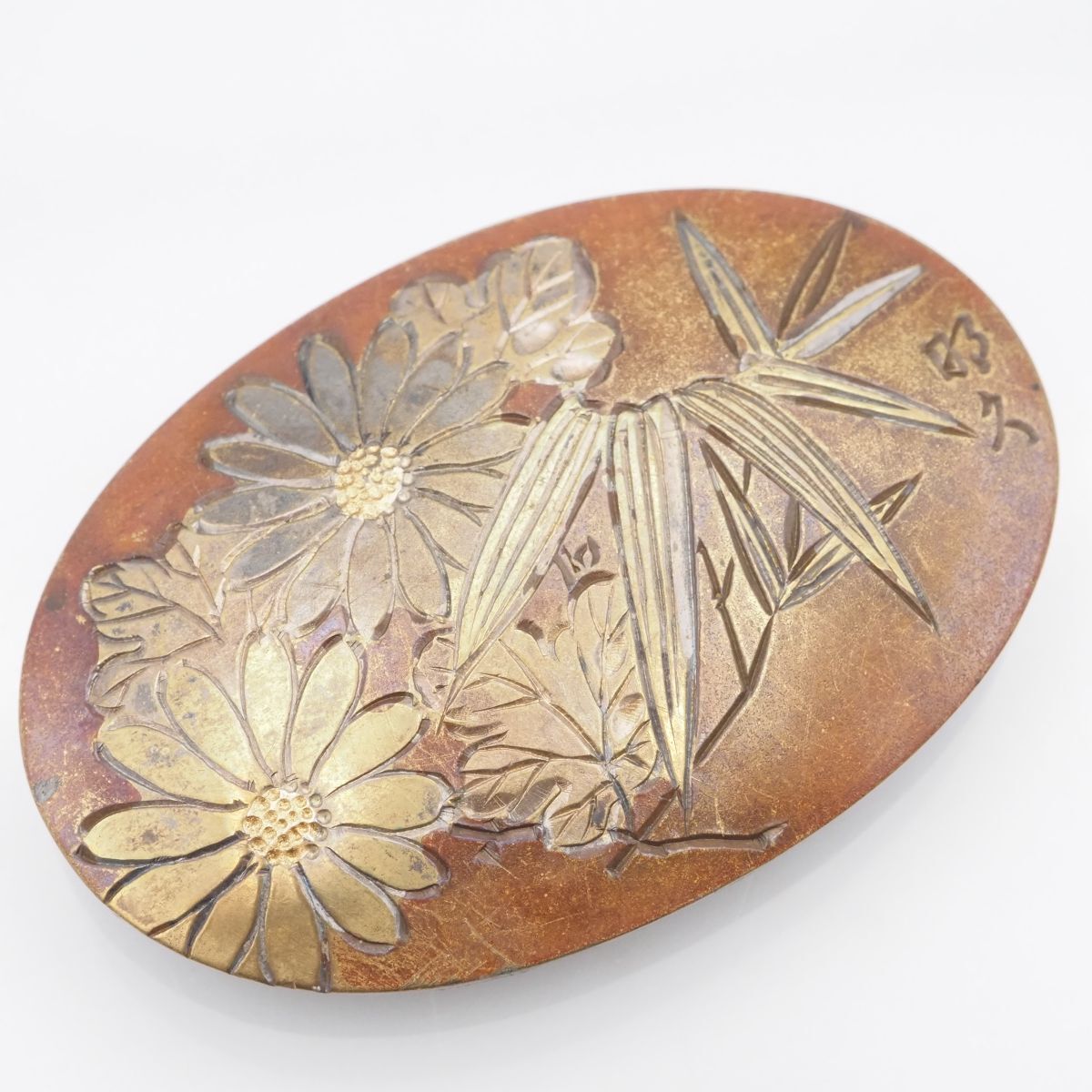 C418 アンティーク 彫金 作家物 昭久作 帯留め 花彫刻 デザイン 和装小物 金属製