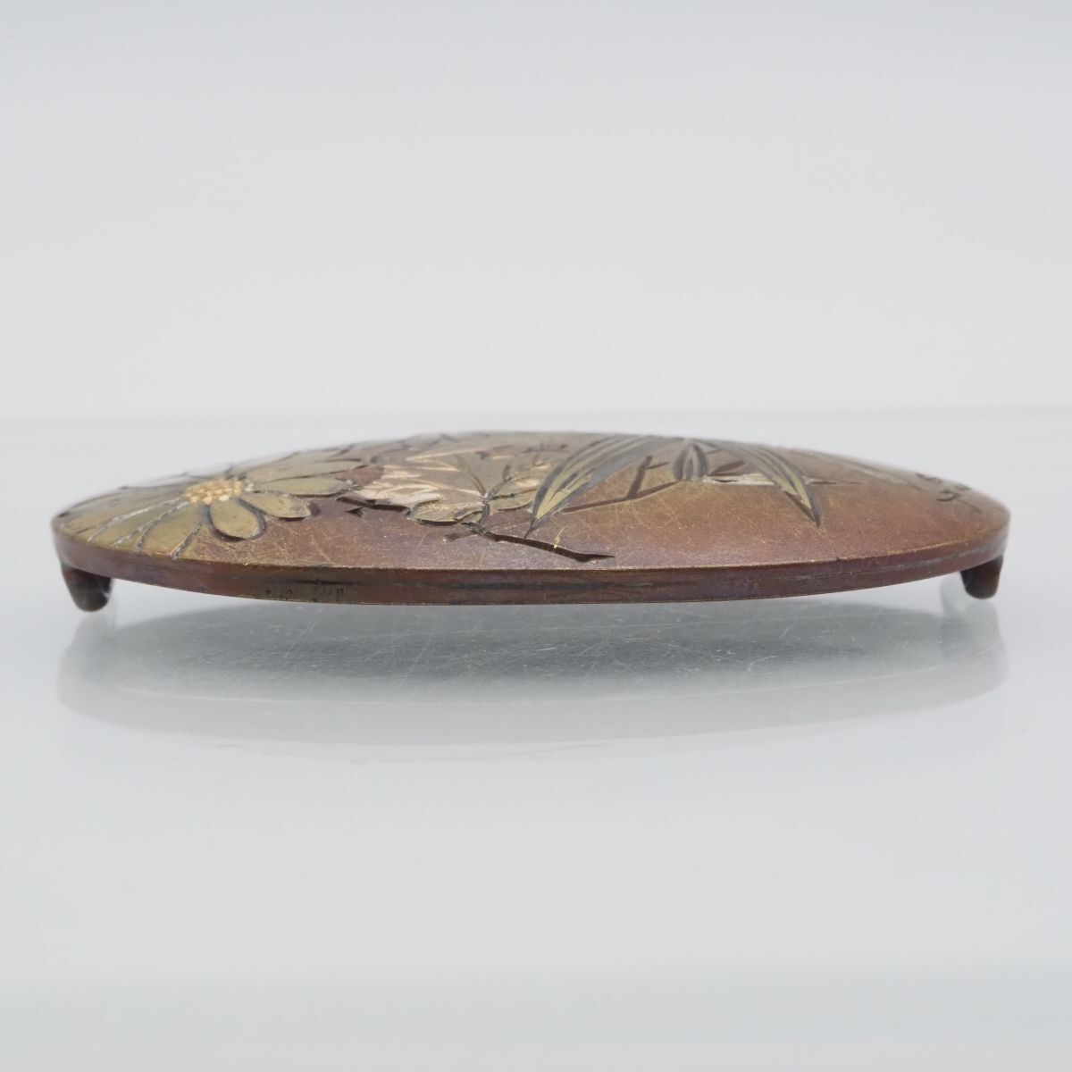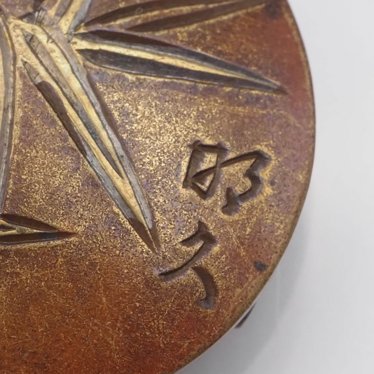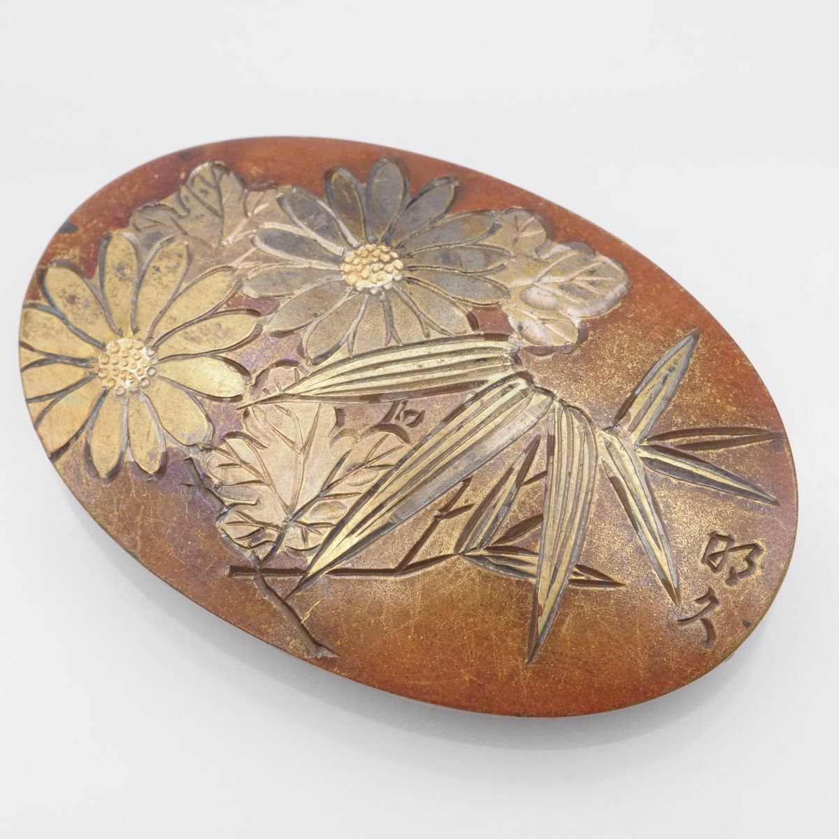 C418 アンティーク 彫金 作家物 昭久作 帯留め 花彫刻 デザイン 和装小物 金属製