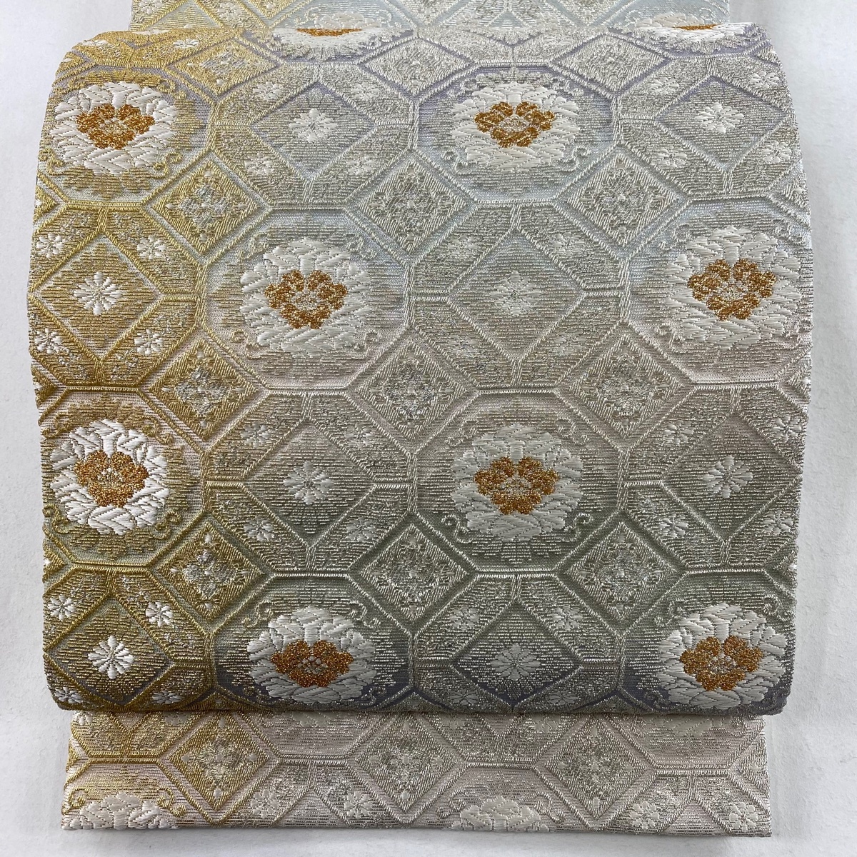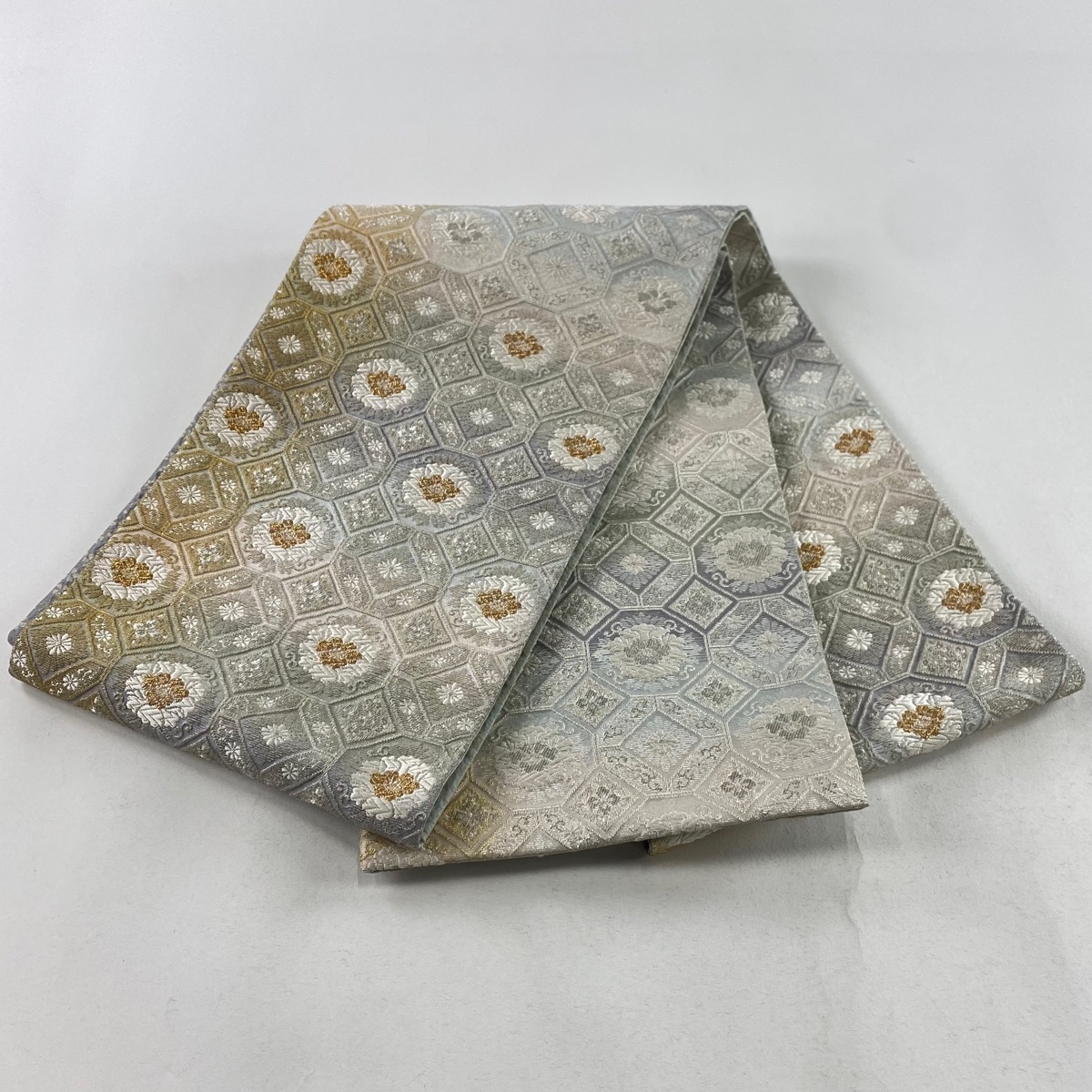 | 袋帯 美品 名品 草花 金銀糸 唐織 灰紫 お太鼓柄 正絹 【中古】 |