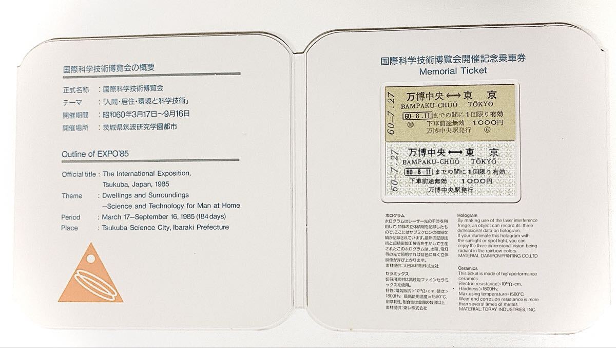 [カテゴリ/検索用]国鉄 JNR 記念乗車券 メモリアルチケット EXPO85 つくば科学万博 科学万博 昭和60年 記念切手 特印 郵趣 鉄道コレクション 昭和レトロ