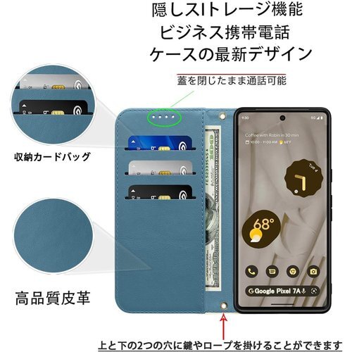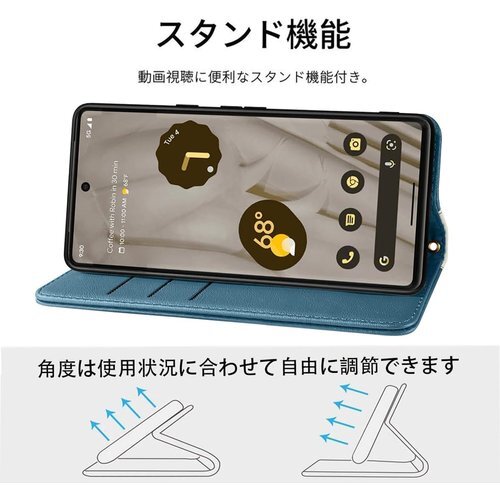 Google Pixel 8 ケース 手帳型 高質PU ット スタンド機能 人気 財布型 スカイブルー+ホワイト 1031