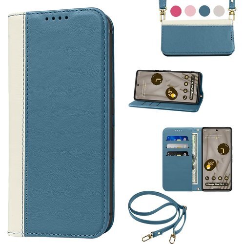 Google Pixel 8 ケース 手帳型 高質PUレザー Google Pixel 8 カバー ピクセル8 ケース 携帯カバー 肌感のよ 二色組合せ 耐衝撃 肩掛け 首かけ 斜めがけ ショルダー ケース 皮革 耐汚れ 内蔵マグネット開閉式 スマホケース おしゃれ カードポケット スタンド機能 人気 財布型 スカイブルー+ホワイト 1031