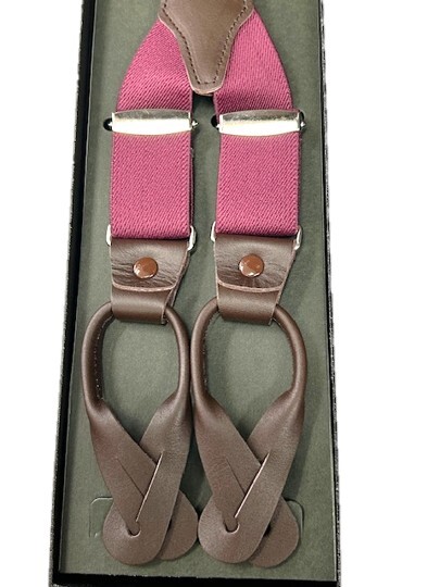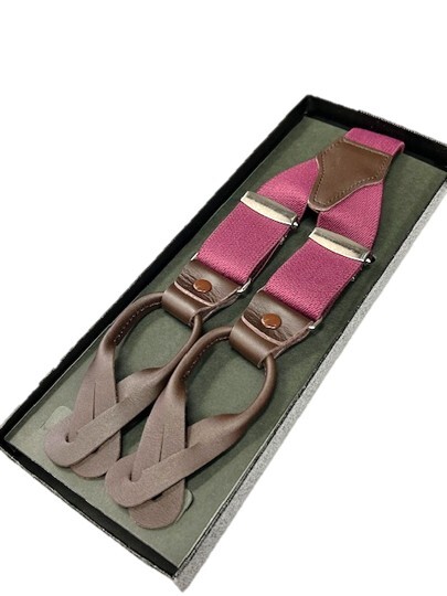 掘り出し物 日本製サスペンダー Y型 エンジ・ボルドー×無地織り ボタン留めタイプ 30mm Mサイズ 専用ケース無し