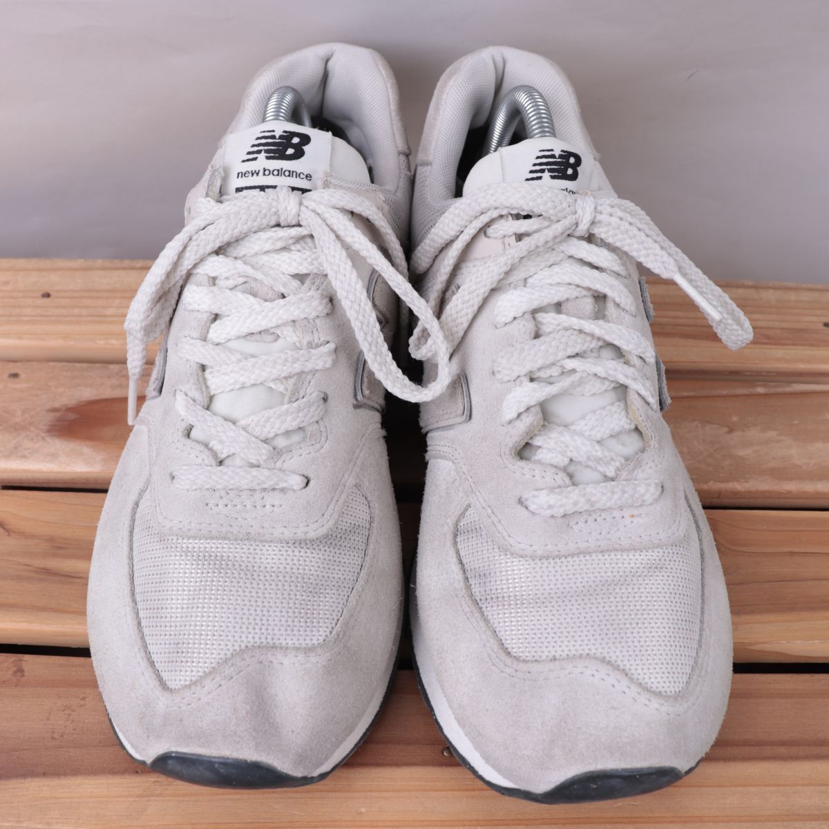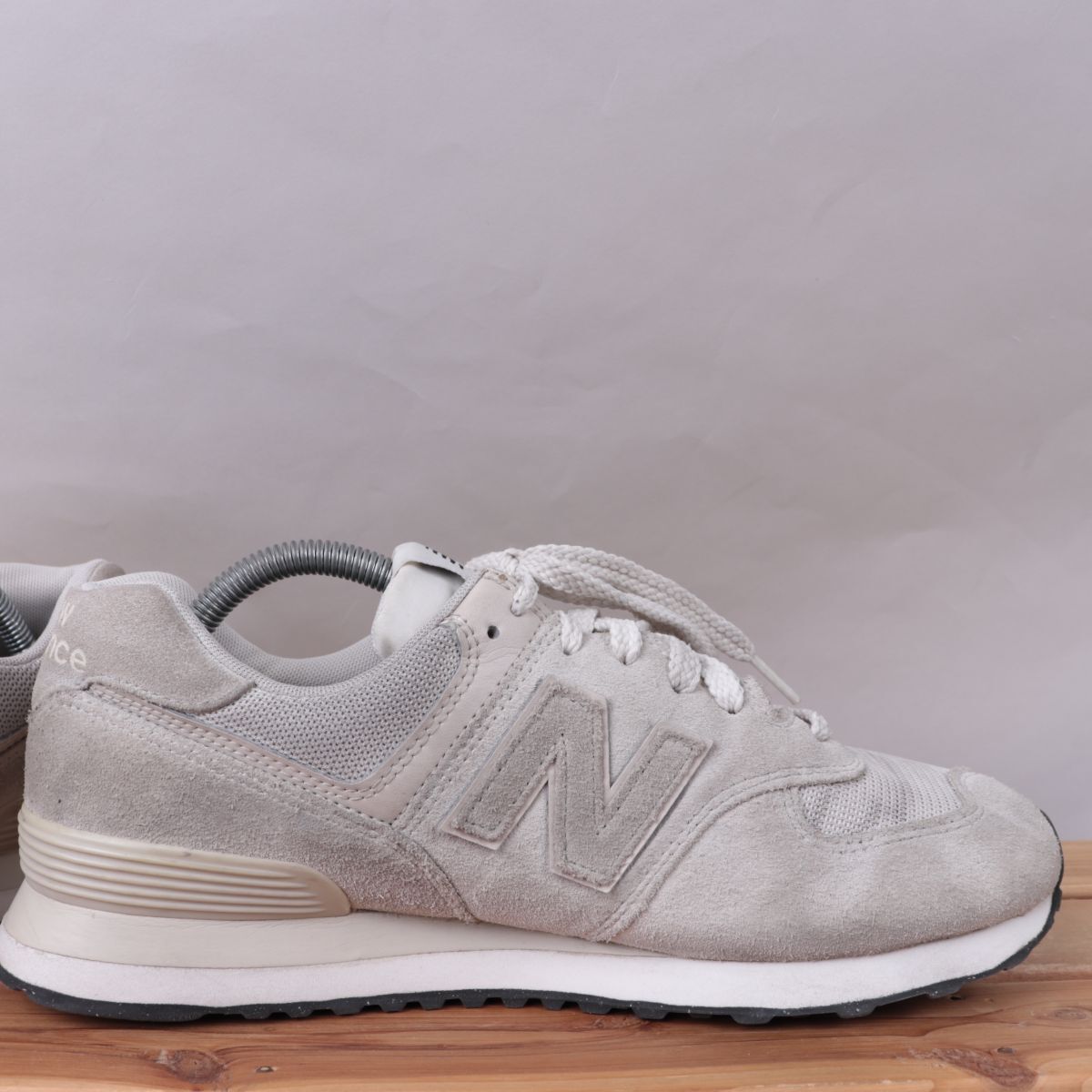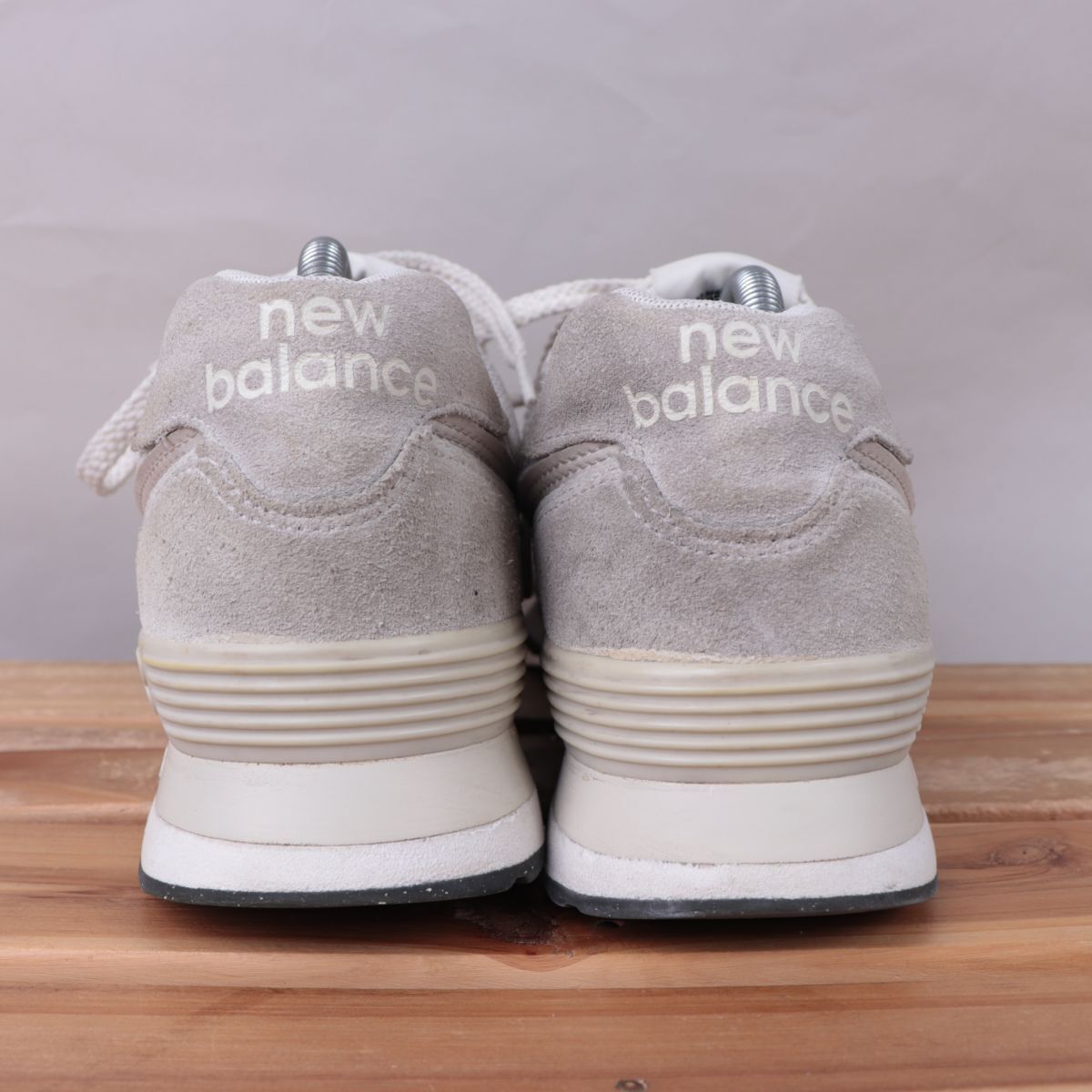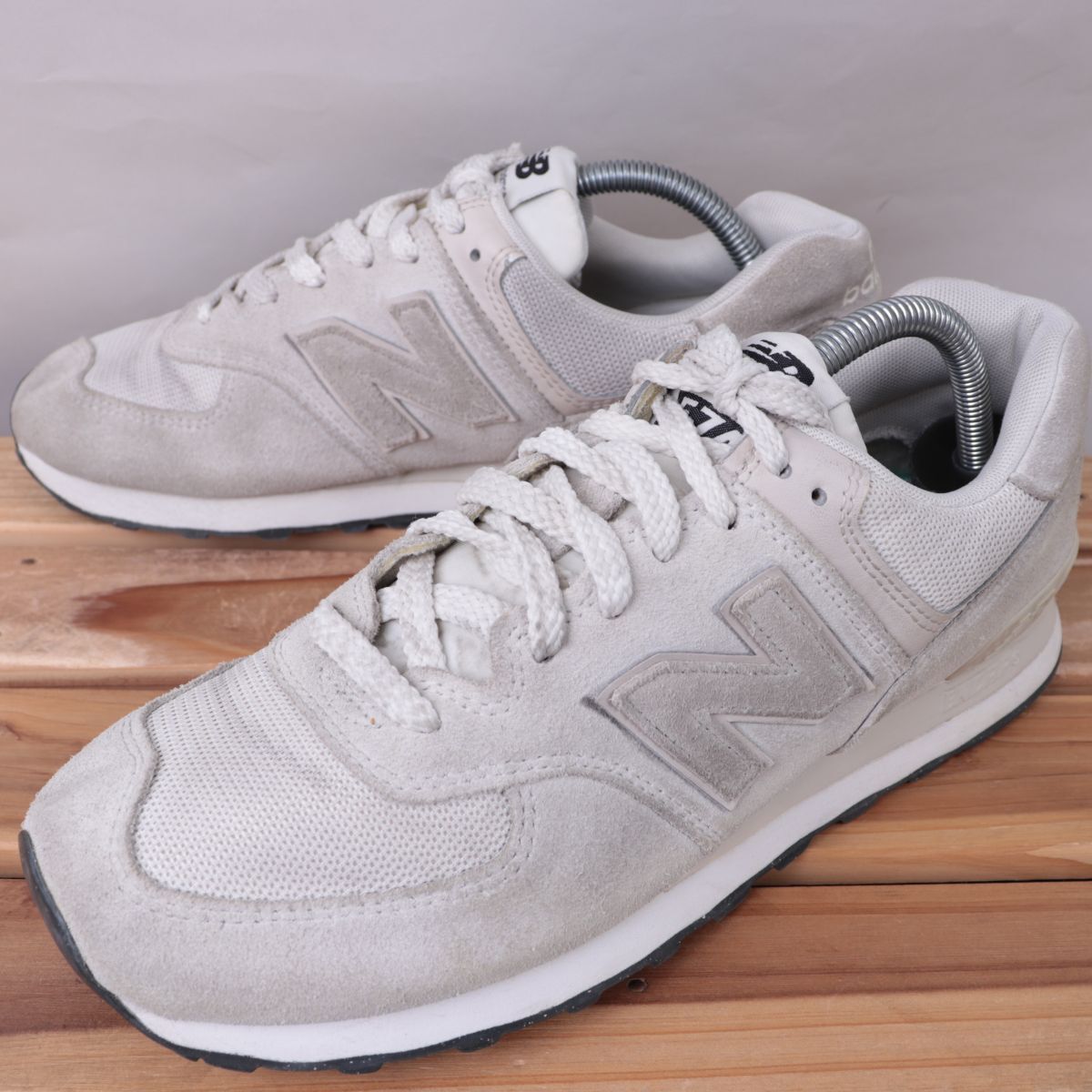 z1640【574】ニューバランス US9 27.0cm/白系 ライトグレー newbalance メンズ スニーカー 中古