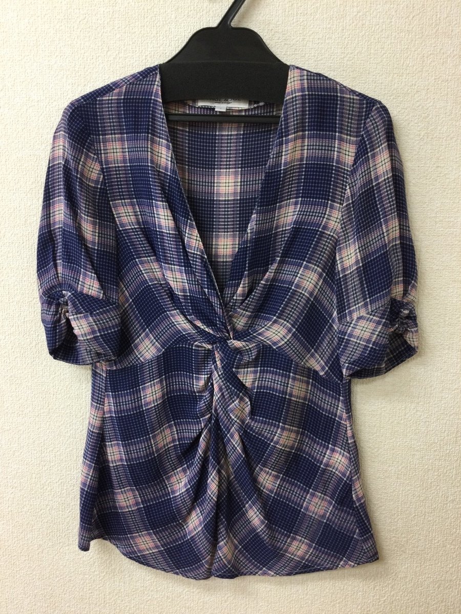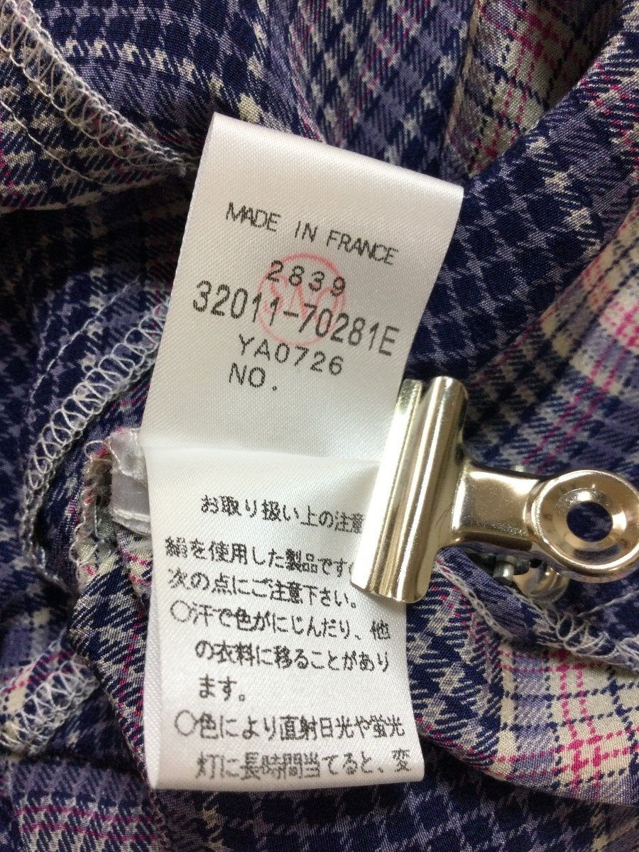 管理番号:10^135225 ポール&ジョー ブルーチェック シルクブラウス 表示サイズ:1 実寸(参考)