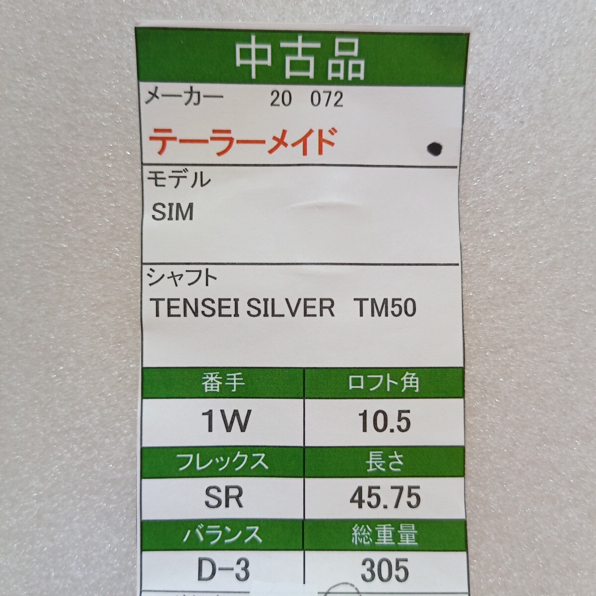 【即決価格】【1W】テーラーメイド/SIM/10.5度/TENSEIシルバーTM50/FLEX SR/カバー無し
