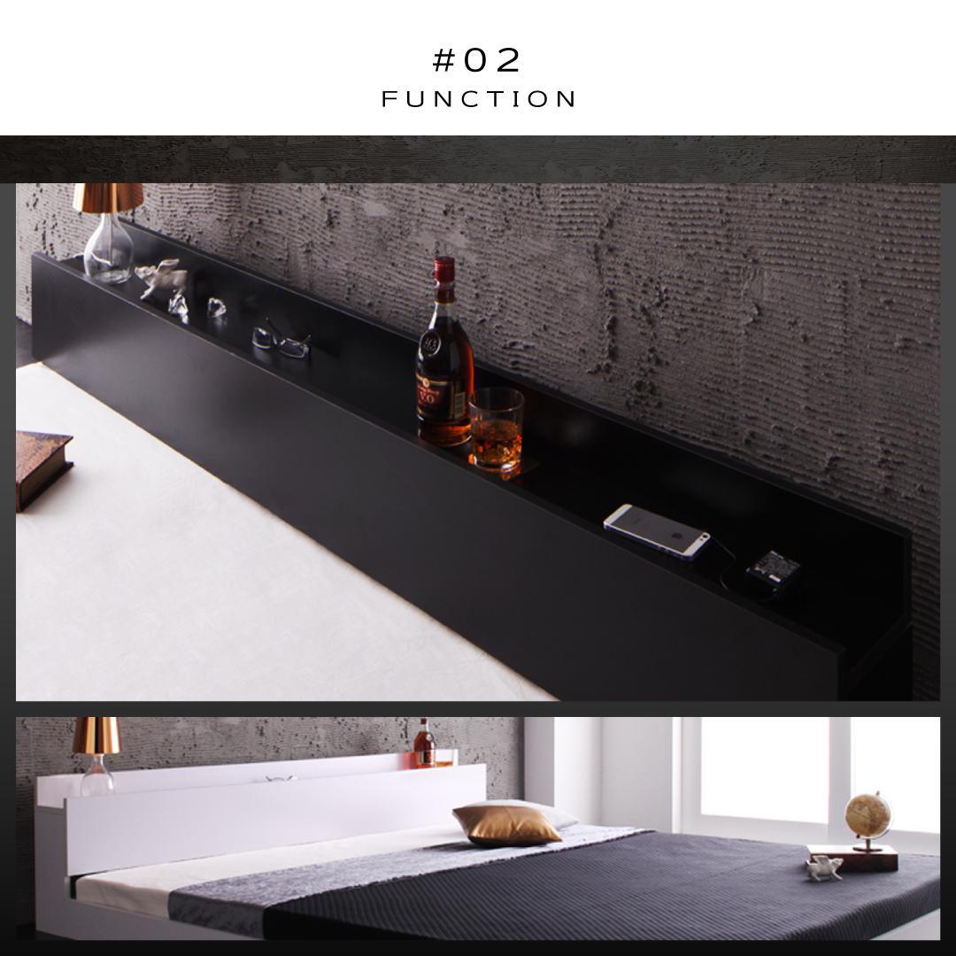 棚・コンセント付きフロアベッド スタンダードポケットコイルマットレス付き ダブル 組立設置付