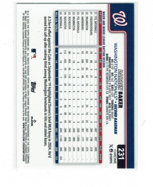 【Darren Baker/ダレン・ベイカー】2025 Topps Chrome ネガティブ リフラクター版 RC #231