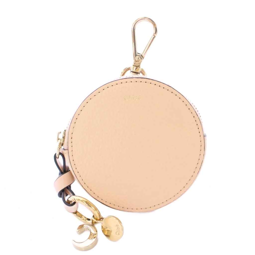 クロエ アルファベットスモールラウンドパース 小銭入れ コインケース レザー 丸型 ロゴチャーム ピンクベージュ