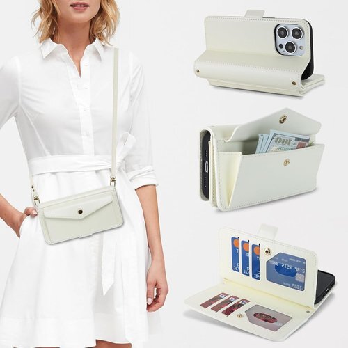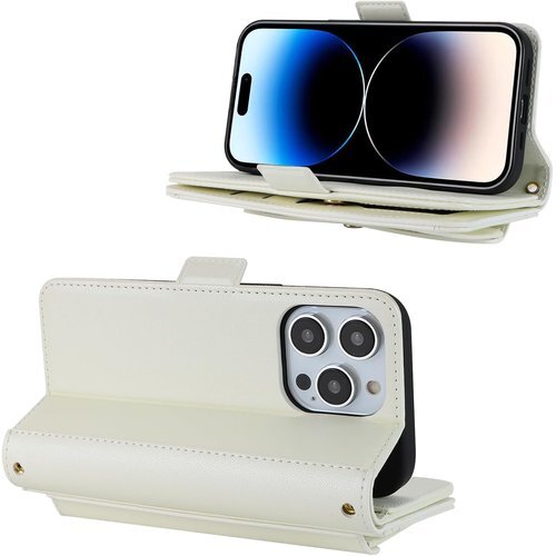 for iPhone 14 Pro ケース ショルダー クロスボディアイフォン 14pro 留め具 肩がけ 首掛け 斜め掛け カードケース for iPhone14 Pro 手帳型 携帯 ケース case 財布型 カード収納 小銭入れ PUレザー 6色 ホワイト