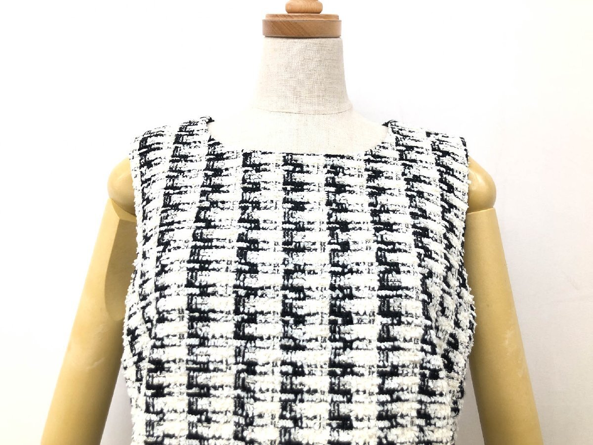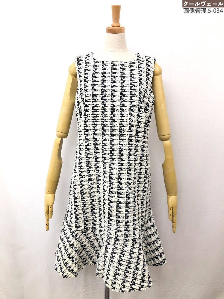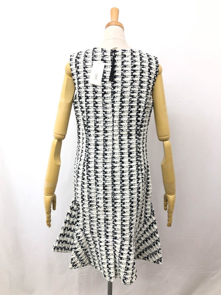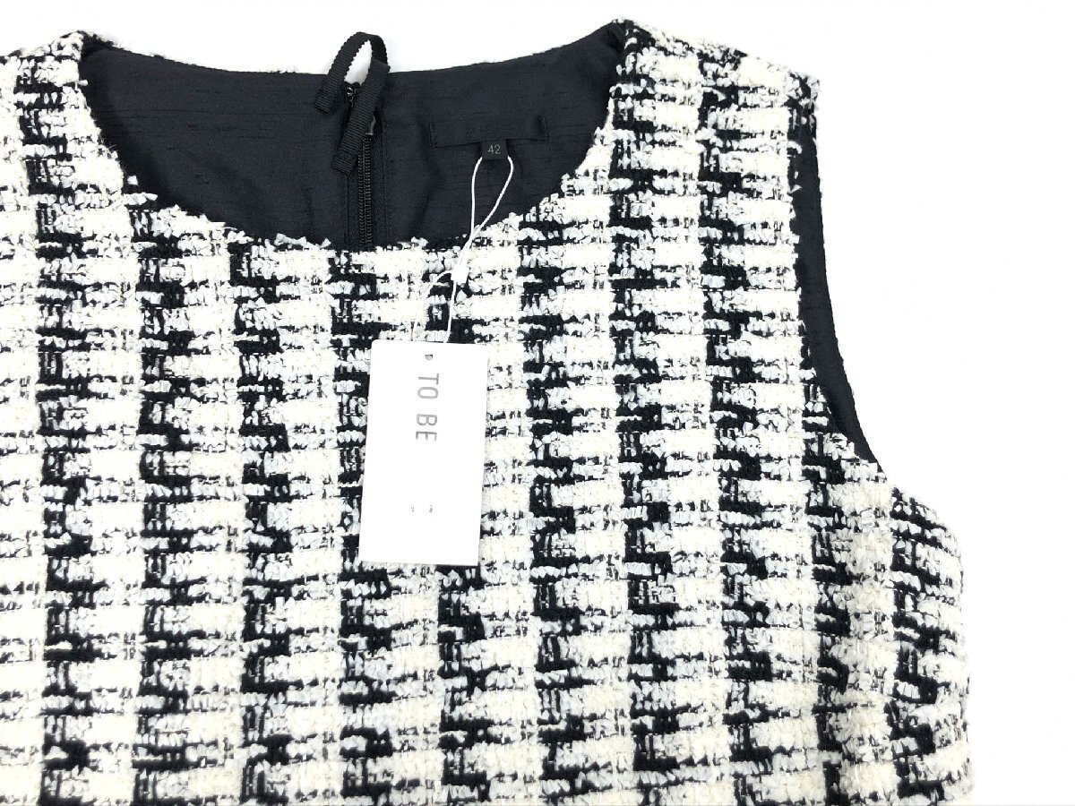 HH未使用【TO BE CHIC トゥービーシック】W5J53-210-05 ノースリーブ ツイード生地 フレアワンピース(レディース)42 アイボリー系 17LO3767
