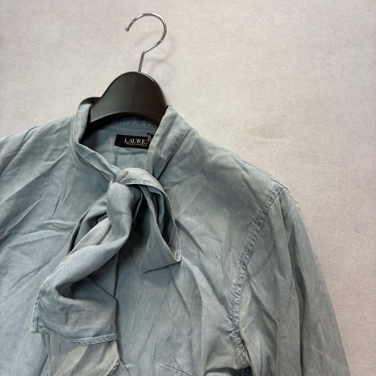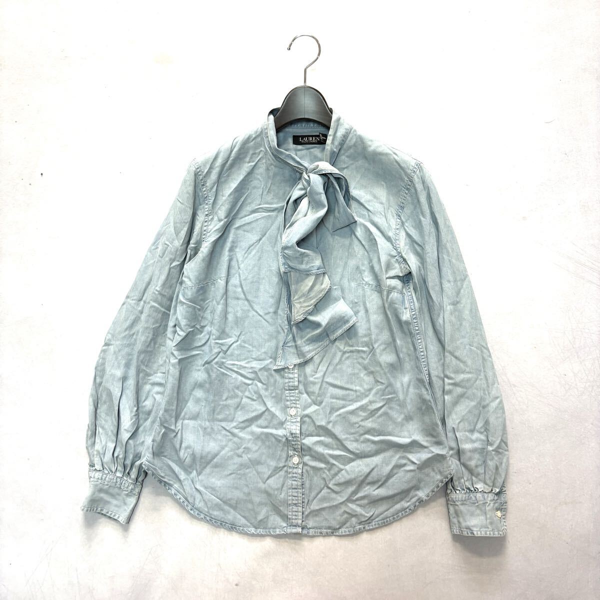 1 ■ 国内正規品 '着心地抜群' LAUREN Ralph Lauren ラルフローレン 長袖 襟なし ボウタイ ボタンシャツ SIZE:SP レディース トップス 古着
