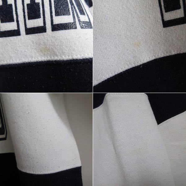 アメリカから買い付けたアイテムです。 1932年に創業しMADE IN USAを貫く希少なアメリカスポーツウェアブランド”Velva Sheen”の1990年代製 カレッジプリント スウェットです。 前VデザインでMINNESOTAのプリント入り。 紺白のボーダーデザインで90年代らしいゆったりサイズが嬉しいポイントです。 白い部分にシミ汚れ、全体にうっすら毛玉など使用感はありますが、目立ったダメージはなくまだまだ着用いただけます こういったベーシックなアイテムも、アメリカ製のオールド物は見つかり難くなっており、 どんどん希少性が上がっています。 是非ご検討ください。 |