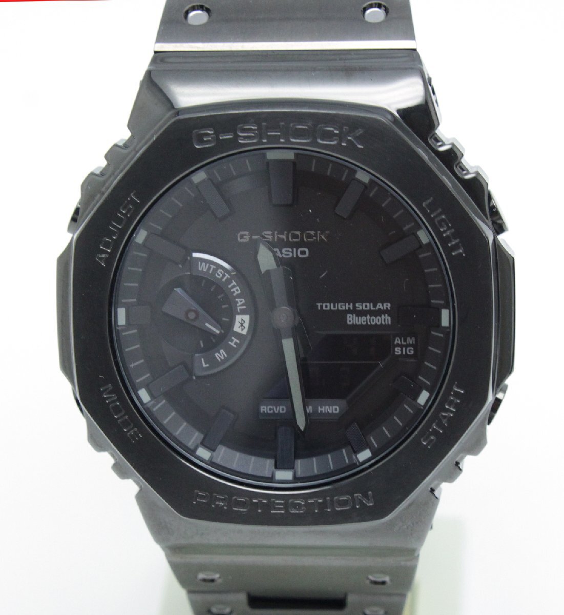 【お問い合わせ番号】250830059 【ブランド】CASIO 【モデル】G-Shock ref.GM-B2100 【製造番号】221356A0150 【材質】ステンレス 【文字盤】ブラック 【ケースサイズ】直径45×厚さ13mm リュウズ除く 【ブレスレット内径】最大22cm サイズ調整承ります。上記より長くすることはできません。 【ムーブメント】電波ソーラー(Bluetooth) 【防水性能】200m防水 【付属品】純正ボックス、説明書 【状態】中古Aランク 目立つキズやヨゴレはほとんど見られず、キレイな状態の商品です。 【保証】内部機械の自然故障について6ヶ月間保証 保証期間終了後も、有償にて修理を承ります。 防水性能について 時計本体及び説明書にもとづく防水性能です。 防水性能を保証するものではありません。 防水性能の維持にはパッキン交換が必要です。 水中でご使用する場合は定期点検をおすすめします。 精度のついて 正常な状態で、機械式時計は1日に30秒以内、 クォーツ時計は1ヶ月に30秒以内の精度誤差が発生します。 精度は、温度、姿勢、磁場等により変化します。 当社商品は全て専用計測機で精度検査済みです。 保証について 正常な使用において内部機械(ムーブメント)の不具合が発生した場合に無償にて調整・修理いたします。 外装、防水に関する故障は保証対象外です。 誤った使用方法、事故及び故意による故障は保証の対象外です。 作業は当社指定業者にて行います。 メーカーでの修理、及び当社で必要無いと判断さする作業は有償になります。 郵送の場合、送料はお客様のご負担となります。 詳しくはご購入時に発行する保証書をご覧ください。 |
