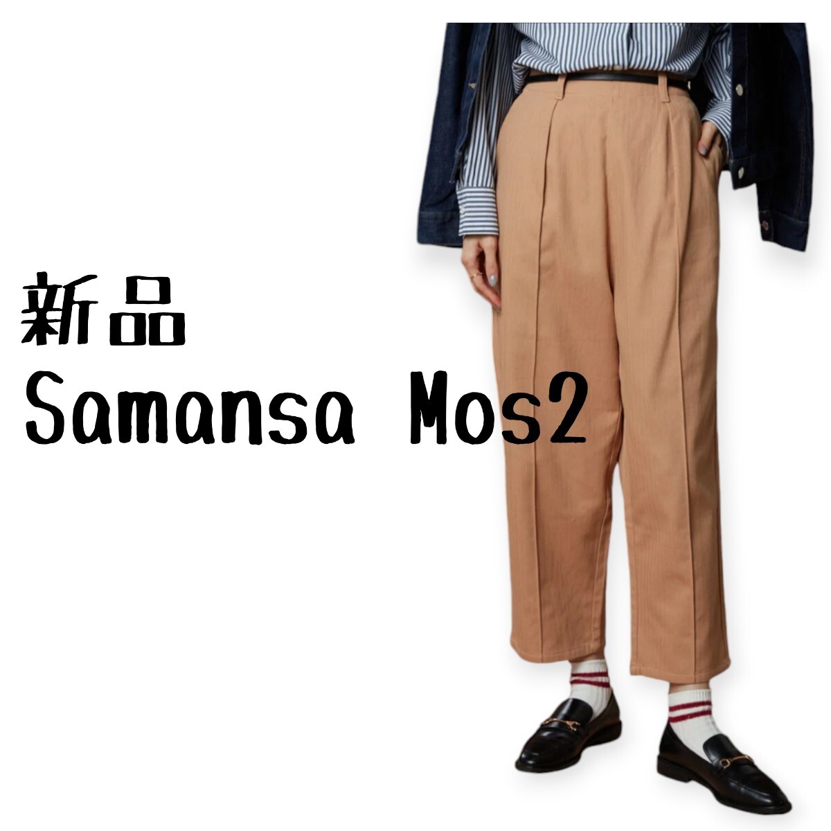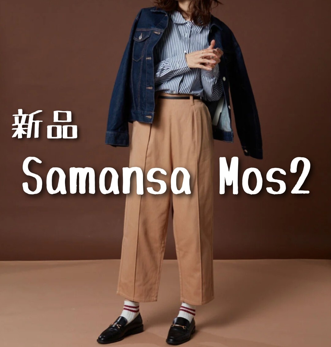 新品 Samansa Mos2 サマンサモスモス SM2 ヘリンボーン裏起毛ストレートパンツ