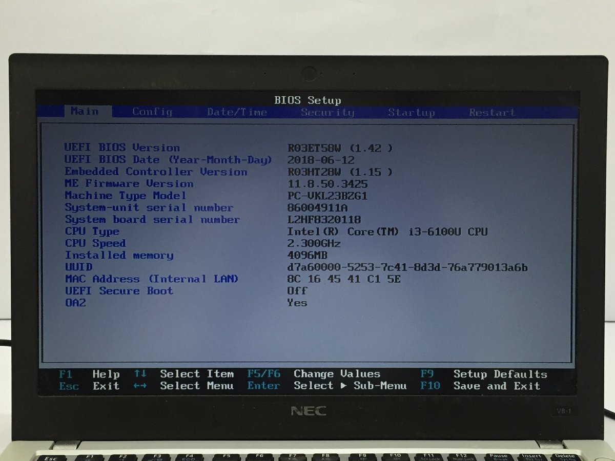 ジャンク/ NEC PC-VKL23BZG1 Intel Core i3-6100U メモリ4.1GB ストレージ無し 【K20511】