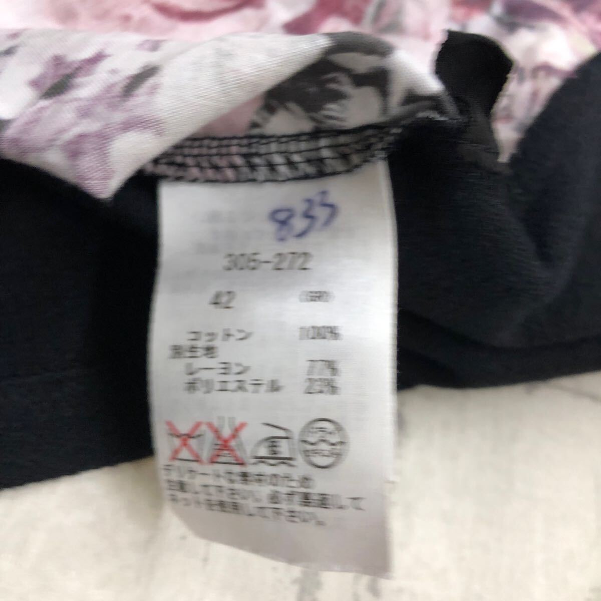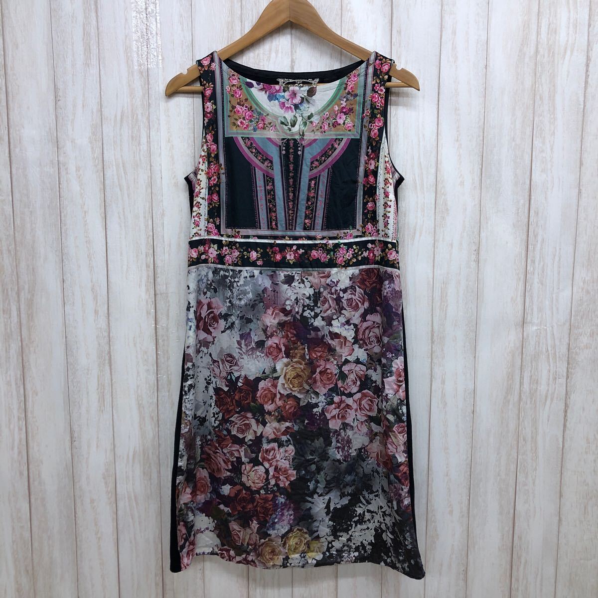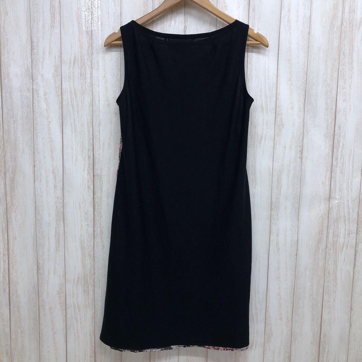 Import Rossa ロッサ 花柄ワンピース サイズ42 ノースリーブ ひざ丈 コットン 日本製 総柄 黒系 レディース YF507