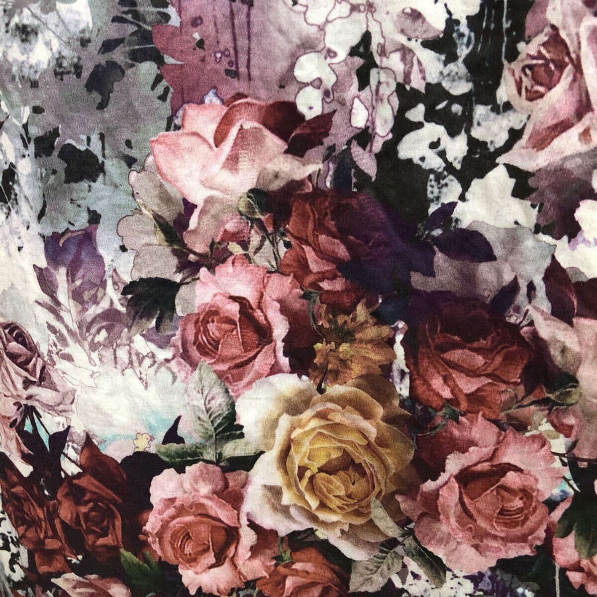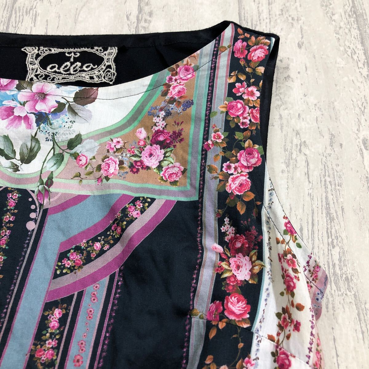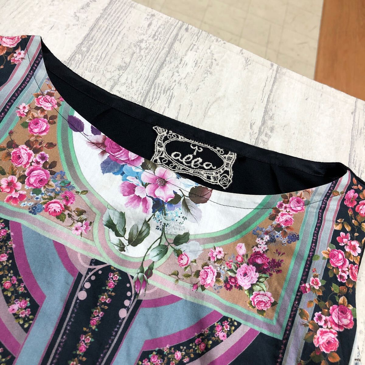 Import Rossa ロッサ 花柄ワンピース サイズ42 ノースリーブ ひざ丈 コットン 日本製 総柄 黒系 レディース YF507