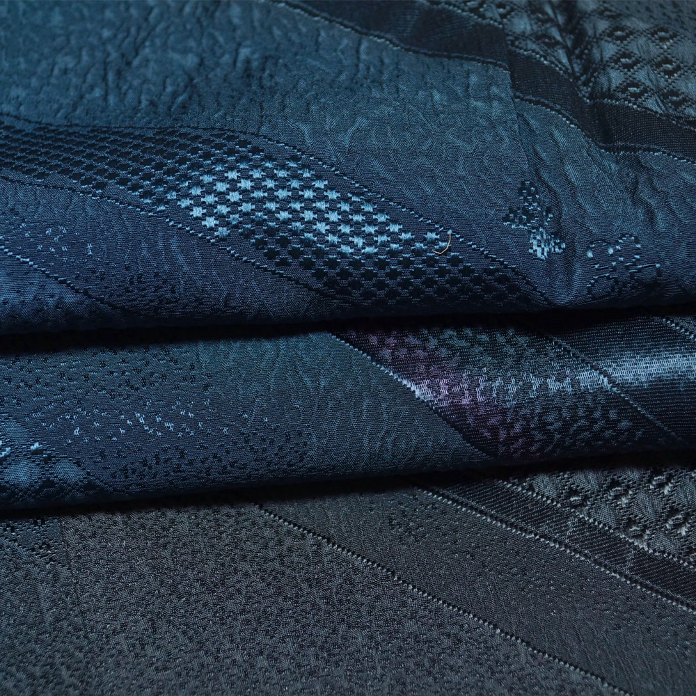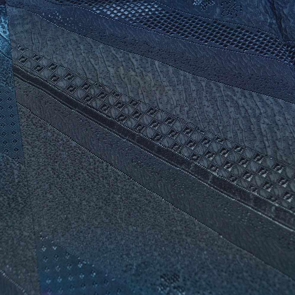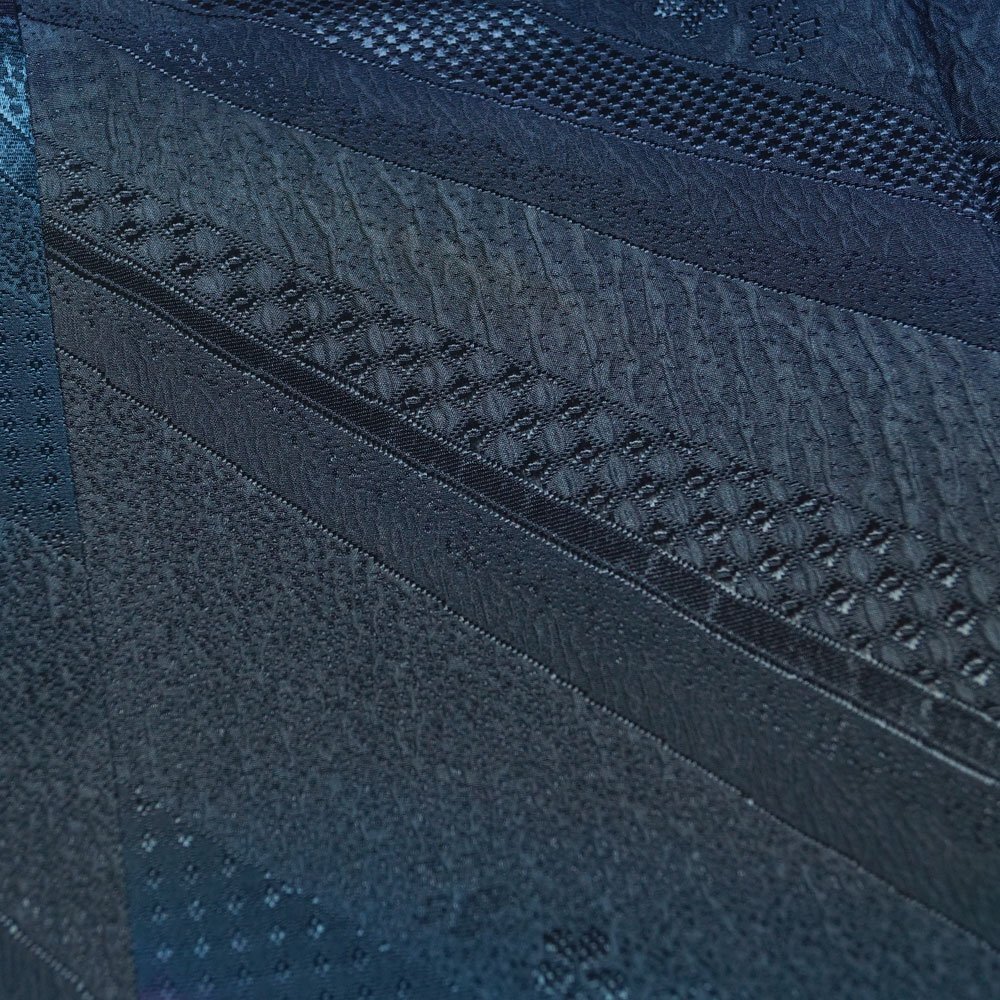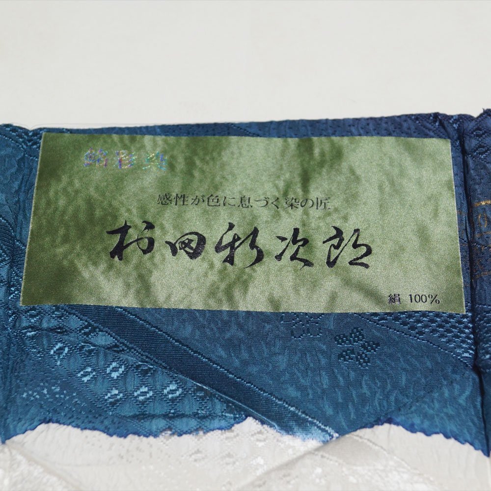 | 商品 説明 | 高麗納戸色系のぼかし地にラインに小花などの模様が地織された道行コートです。羽裏は横縞模様が染められております。 余り布があり、銘彩染 村田彩次郎氏とあります。 |