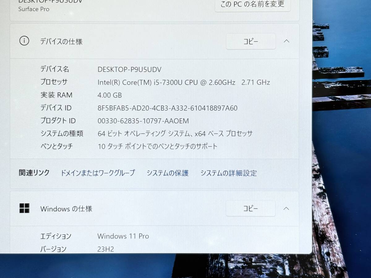 【12.3インチ】Microsoft Surface Pro 5 model:1807『Core i5(7300U) 2.6Ghz/RAM:4GB/SSD:128GB』LTE Advanced Win11 動作品