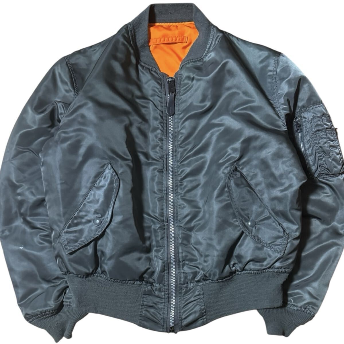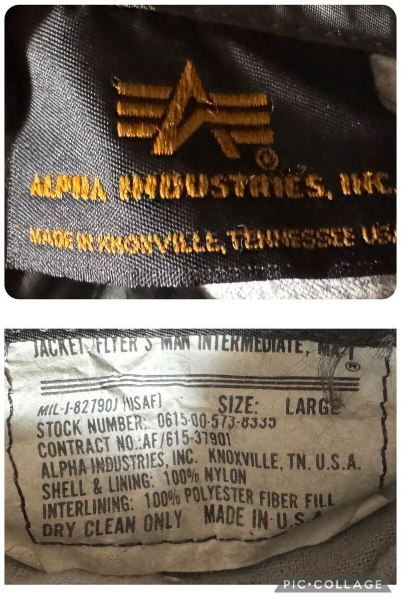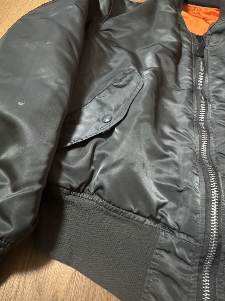 ALPHA INDUSTRIES 90s USA製 ビンテージ MA-1 フライトジャケット ダークカーキ Lサイズ 黒タグ