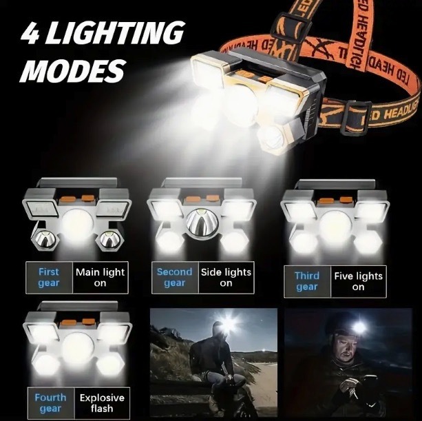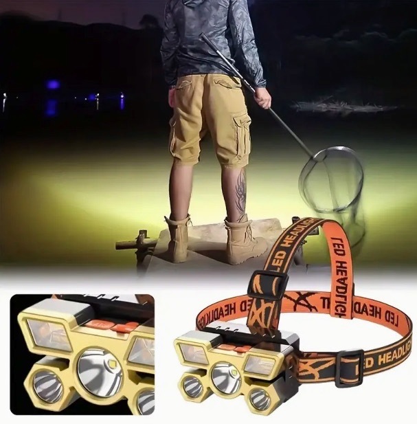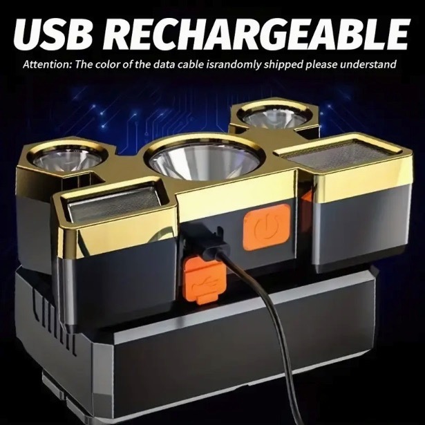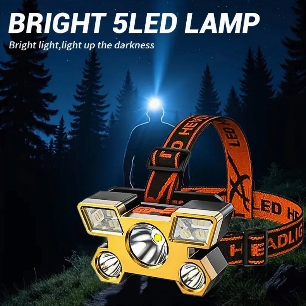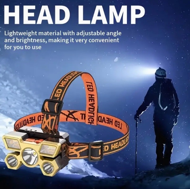 【オレンジ・ゴールド】USB 充電式 LED ヘッドライト