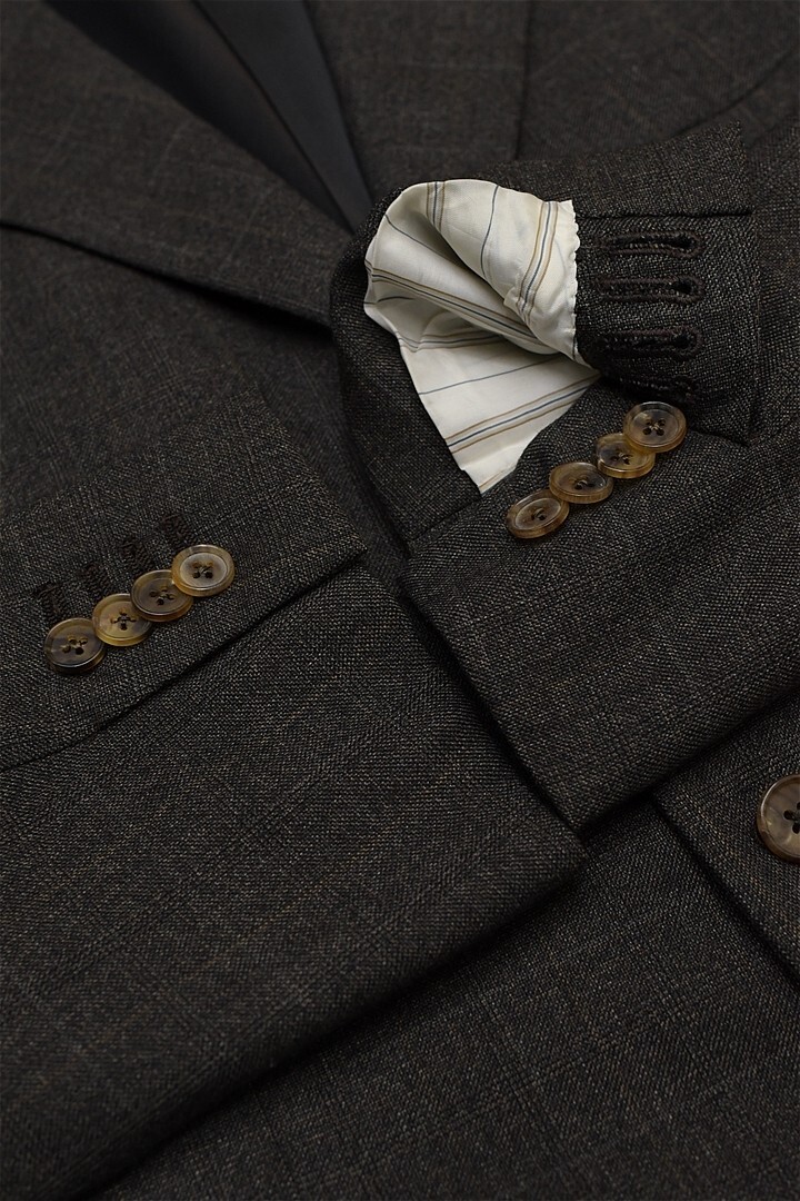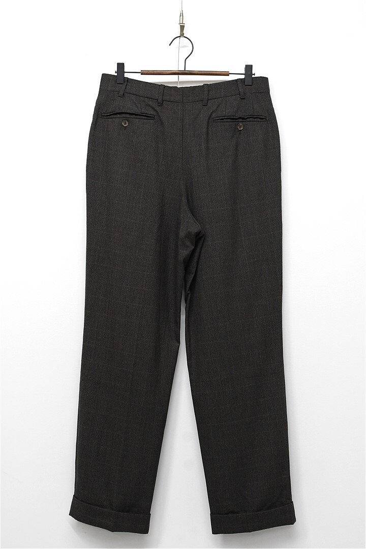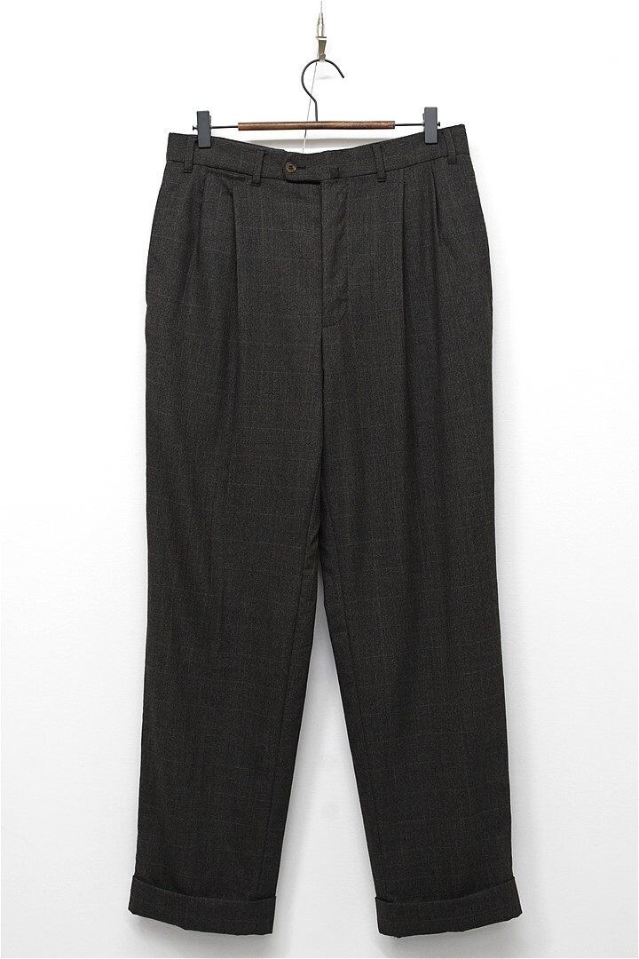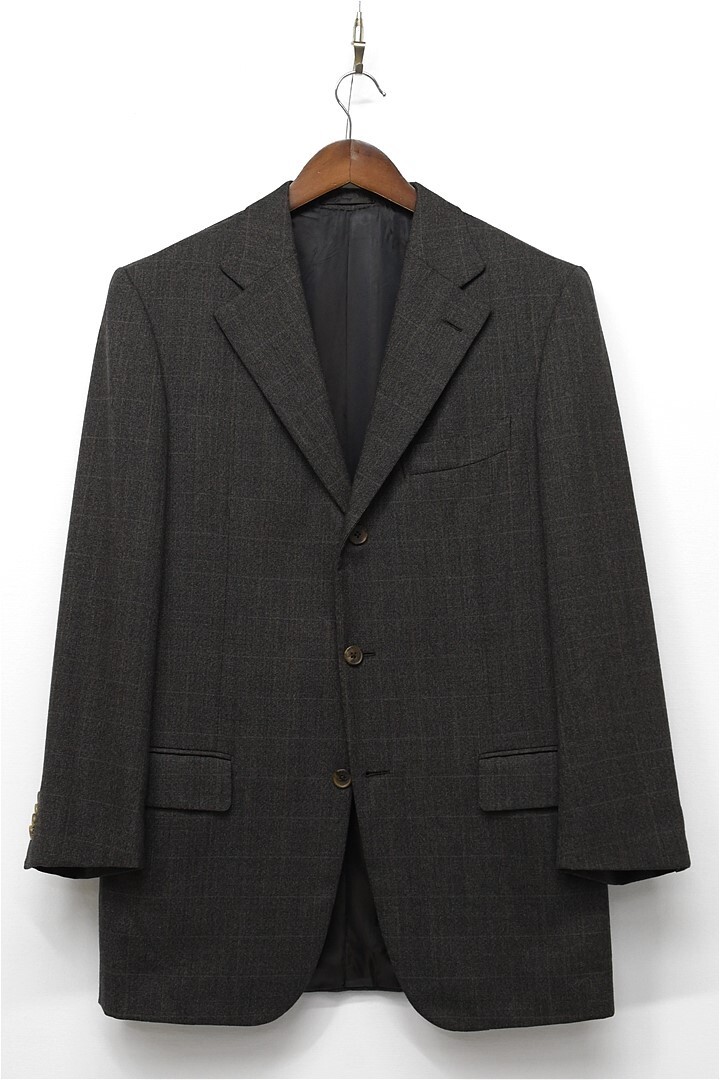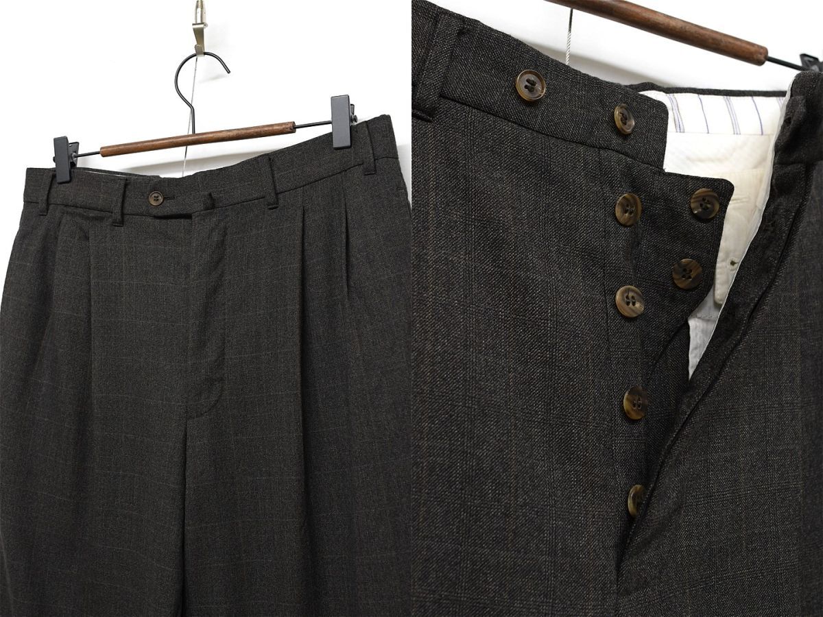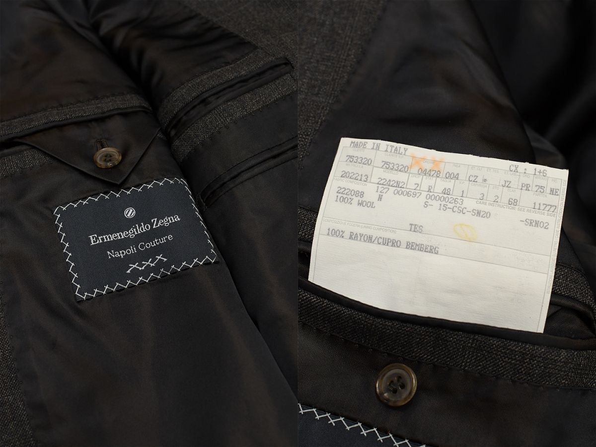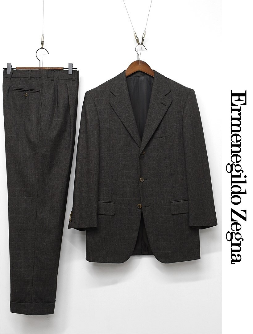 O351/Ermenegildo Zegna ツイード スーツ セットアップ ジャケット パンツ チェック 3つ釦 本切羽 総裏 2タック 裾ダブル 48 L 茶 秋冬