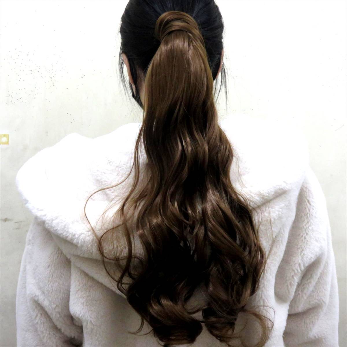 ヘアウイッグ ポニーテール ブラウン 長さ47cm ロング ポイントウイッグ エアウェーブ カール レディース アレンジ コスプレ 茶 エクステ