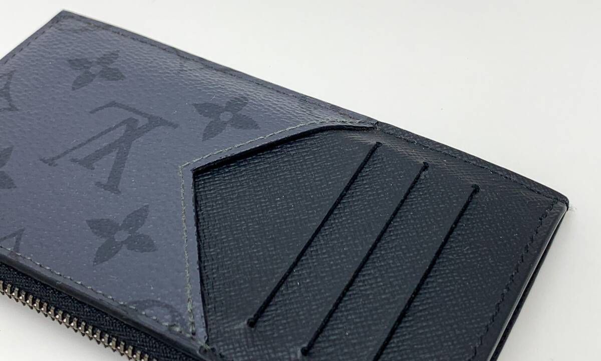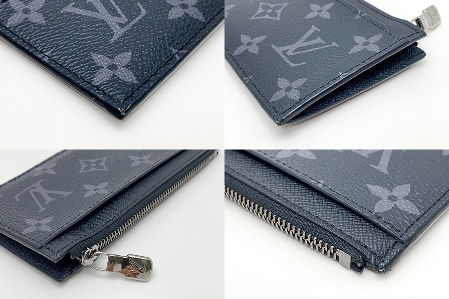 ダークな色合いのモノグラム・エクリプス キャンバスと、より明るい印象のモノグラム・エクリプス リバース キャンバスで仕立てた「コインカード・ホルダー」。スリムなラインが際立つ、すっきりとしたマスキュリンな雰囲気のアイテムです。シンプルなデザインの中に、カード用スロットやファスナー付きコインポケット、紙幣用のコンパートメントを備えています。※公式HPより引用。RFIDタグ搭載のお品です。Bランク。ポケット部分にやや反りあり。角スレあり。ファスナー金具少々変色あり。コインケース内側少々使用痕あり。カード差し込み跡がございますが、まだまだお使いいただけるお品です。 | |