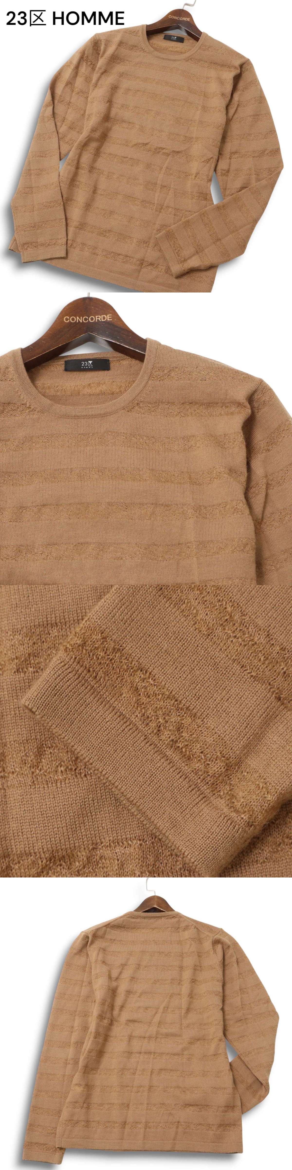 【美品】23区 HOMME オム 秋冬 ウール★ モヘヤ混 ボーダー編み ニット セーター Sz.46 メンズ
