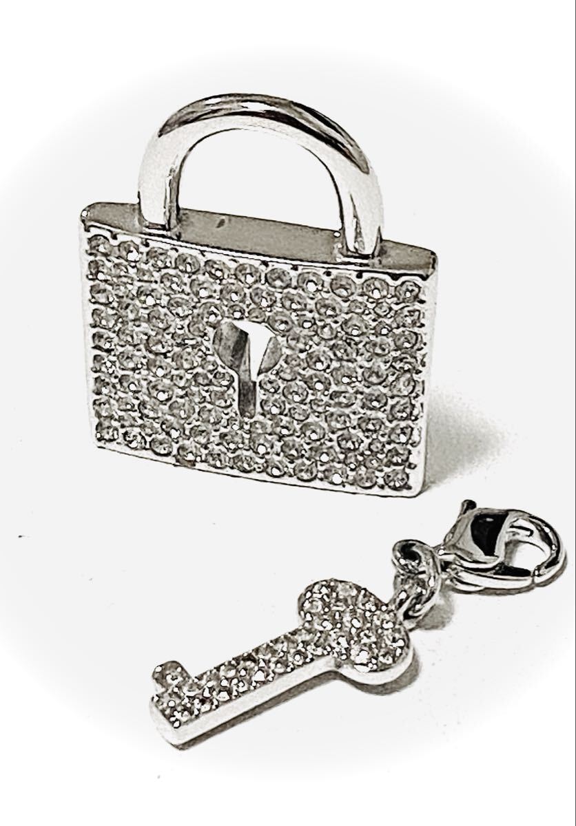 鍵には小さなクリスタルがあしらわれており、南京錠とのペアデザインで華やかさを演出します。