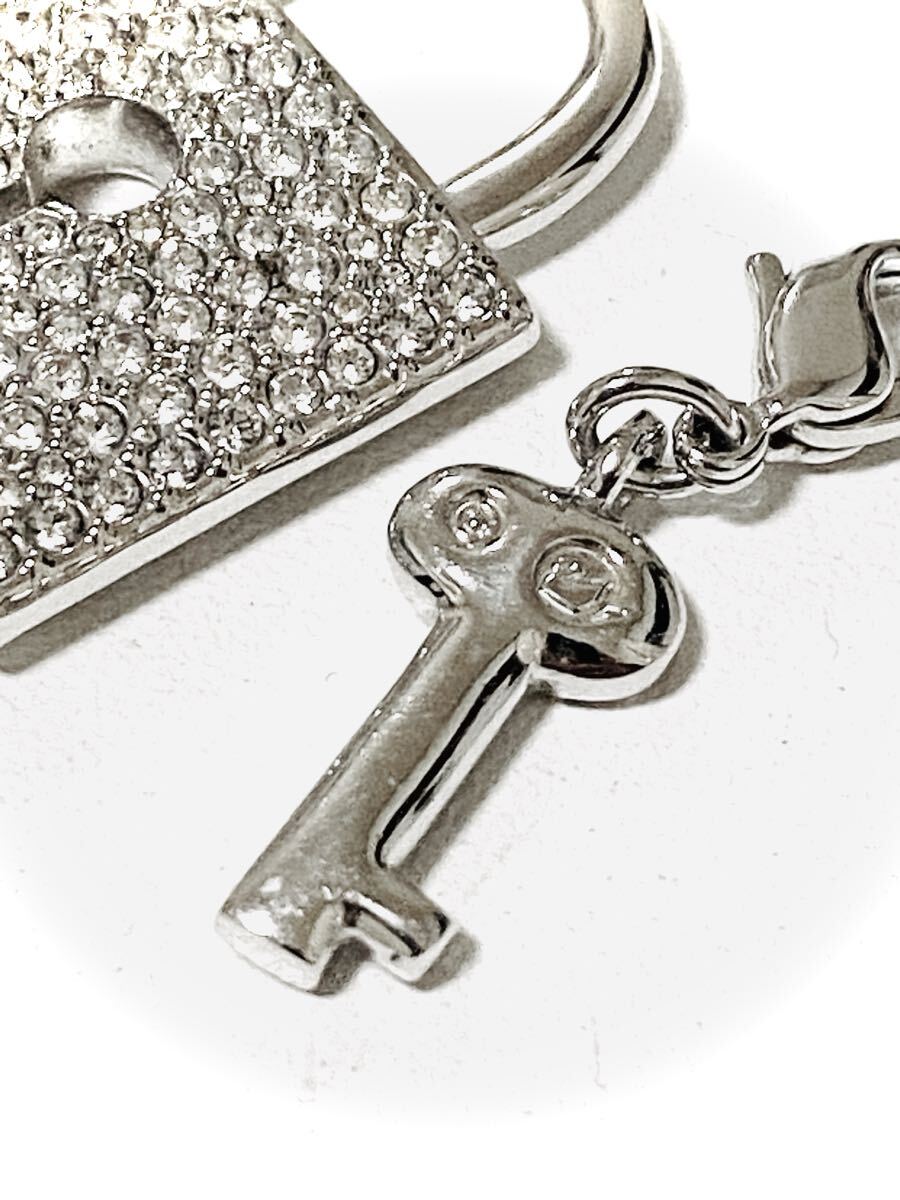 美品【スワロフスキー SWAROVSKI 南京錠 鍵 ネックレス チャーム】鍵 鍵型 ペンダントトップ チェーン 無 パドロック ペンダント ロゴ