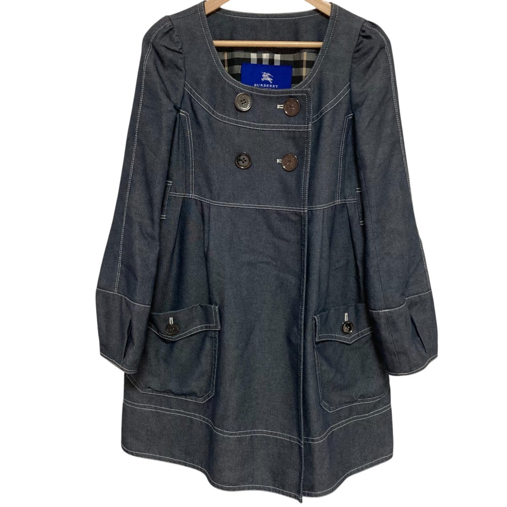 商品名:BURBERRY BLUE LABEL バーバリーブルーレーベル ダブルブレスト ノーカラー デニムコート サイズ38 インディゴ