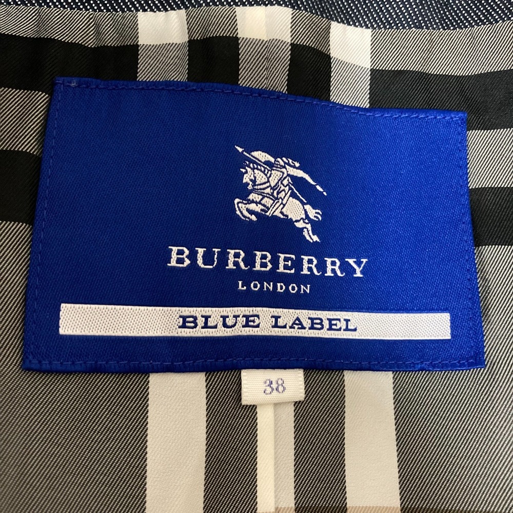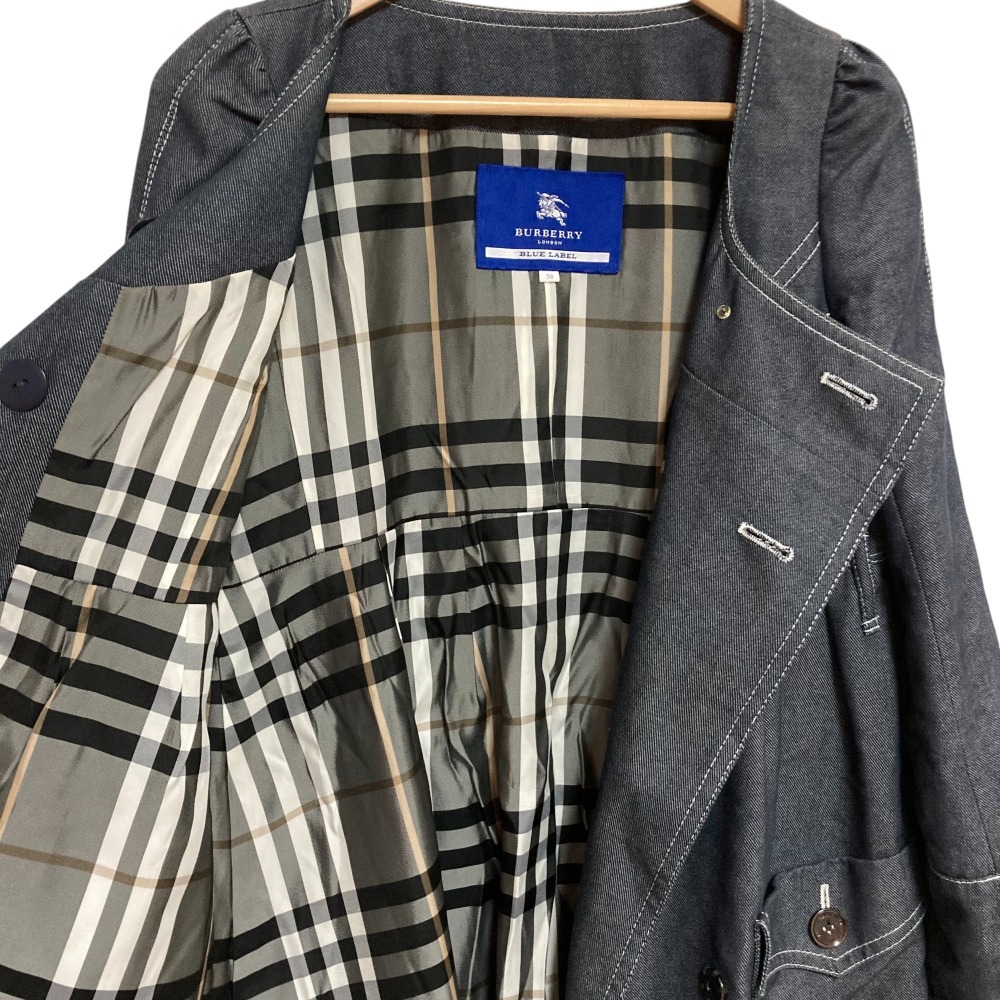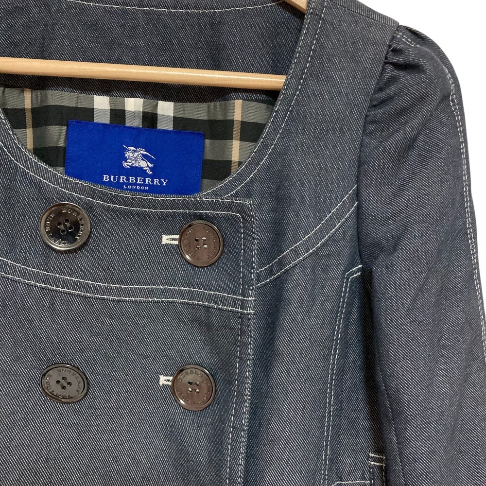 美品 BURBERRY BLUE LABEL バーバリーブルーレーベル ダブルブレスト ノーカラー デニムコート サイズ38 インディゴ