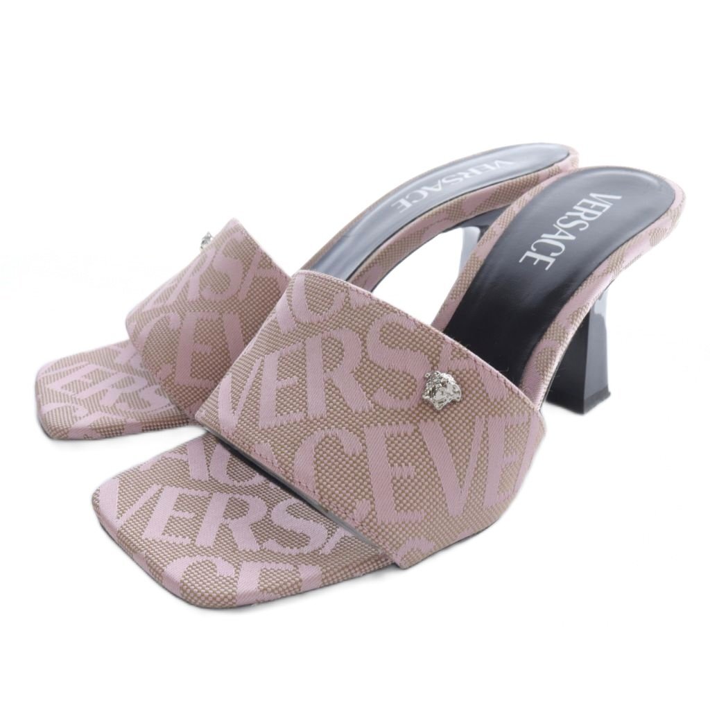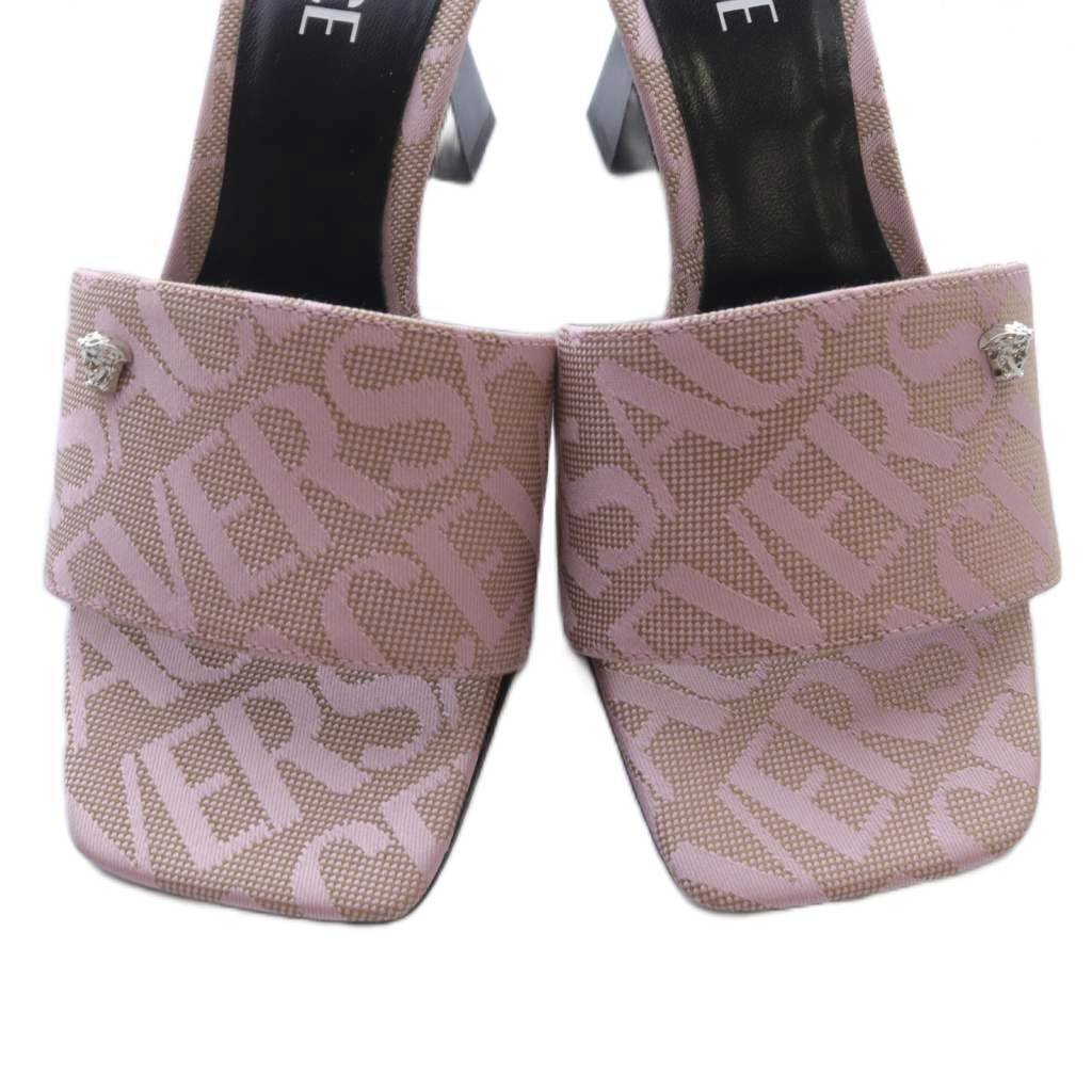 ヴェルサーチ ヴェルサーチェ VERSACE ロゴジャガード ミュールサンダル スクエアトゥ 36 ピンク /SR5 レディース