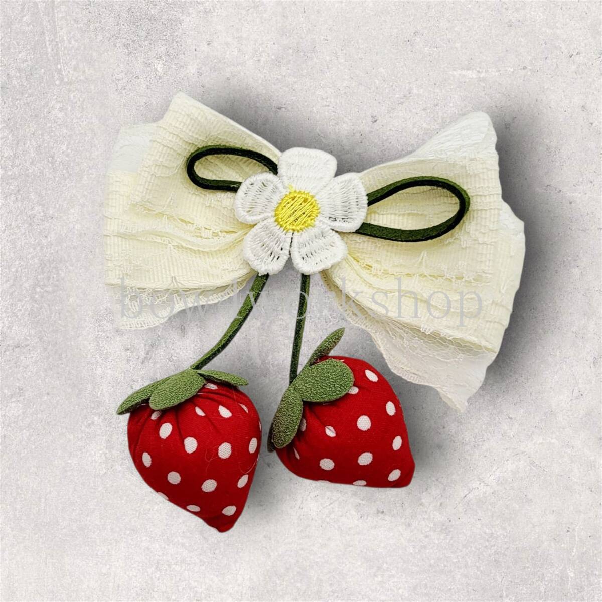 ●イチゴ&リボンブローチ(裏面プラスチックピン仕様)1個