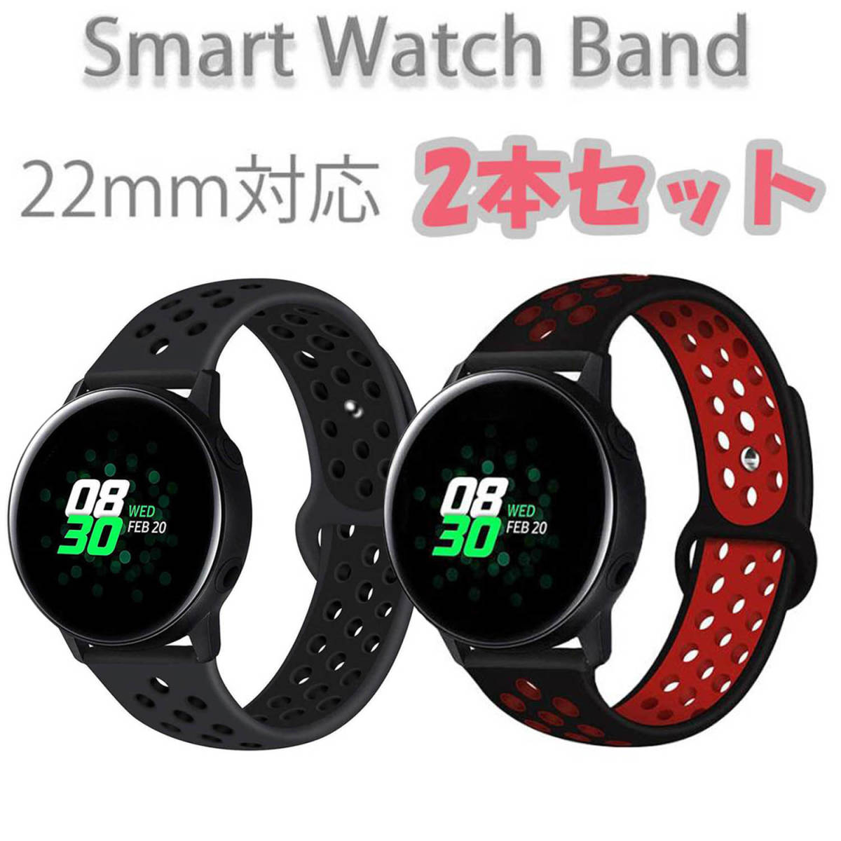 スマートウォッチバンド 2本セット おしゃれ 22mm 穴あき 黒 赤 灰 バイカラー シリコン 替えバンド スポーツ 時計バンド 交換用バンド 安