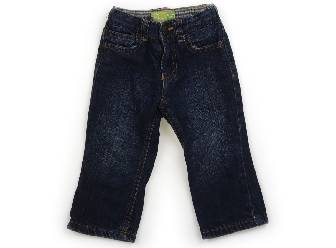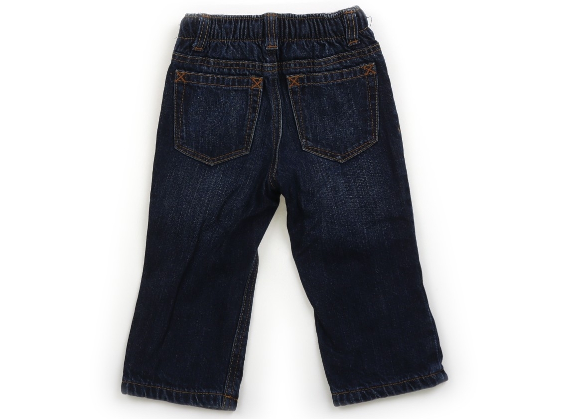 実際のサイズ表記は18-24M。サイズ調整ゴムが付いています。前ファスナー開き。デニム生地特有のユーズド感あり。使用感ありますが、まだお使いいただけそうです。