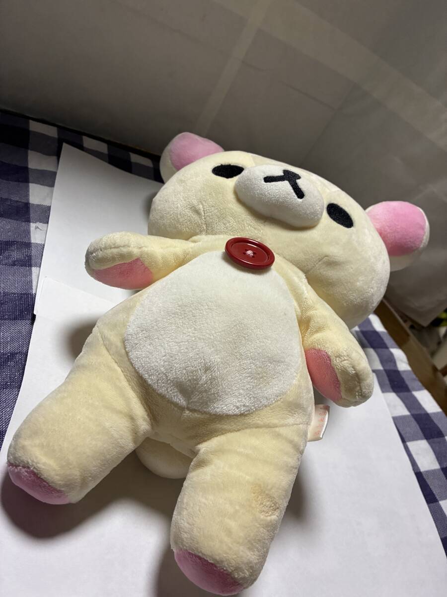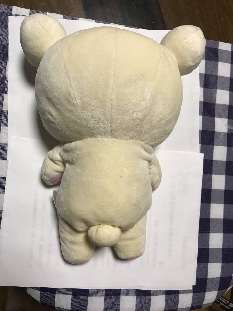自宅保管品です。とても古い商品です。経年劣化などについては、ご理解下さい。大きさですが、一番長い所で、縦31センチぐらい、横24cmぐらいです。足の先の方と腕の先端の所、お尻の部分にじゃりじゃりした物が入っています。宜しくお願い致します。