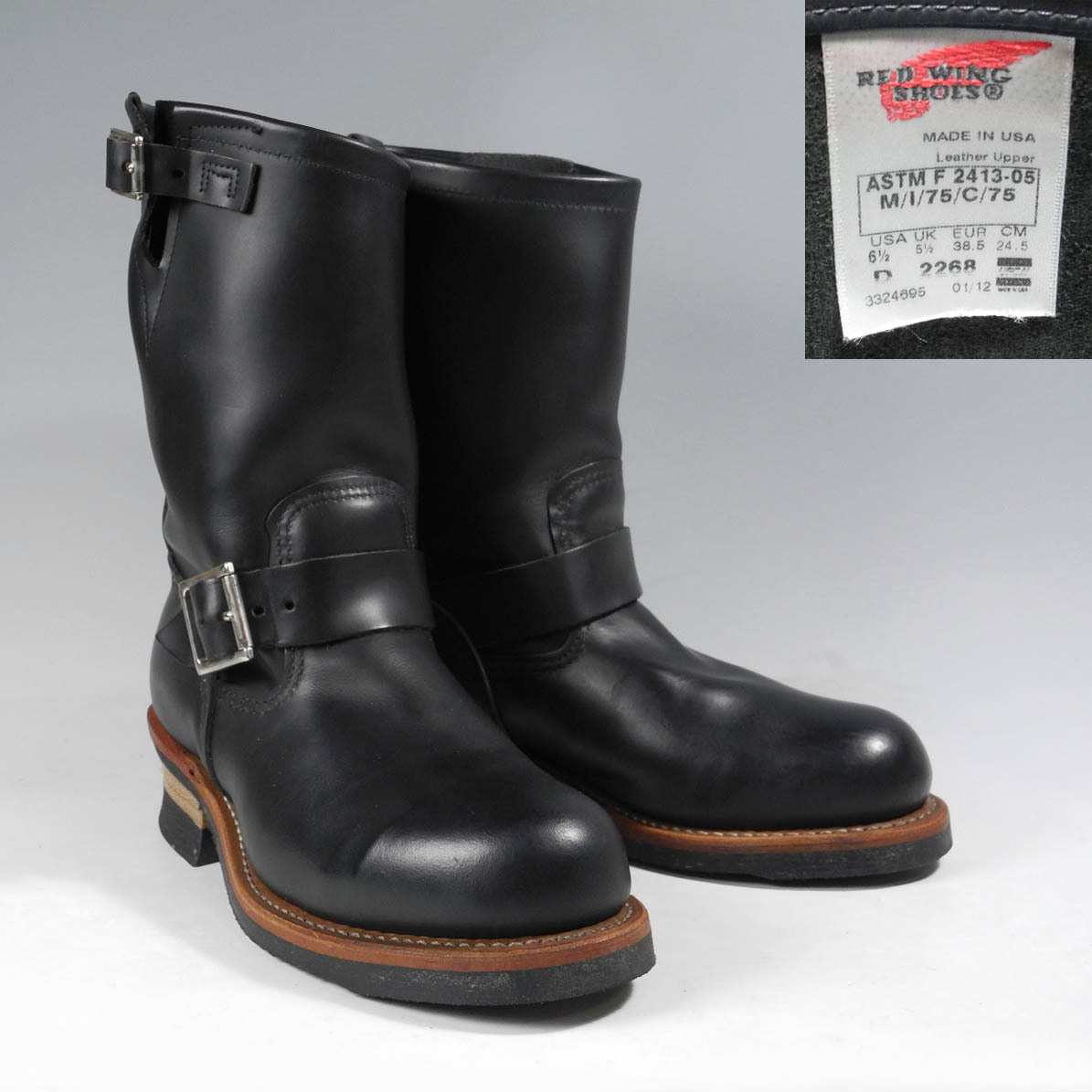 超レア廃盤☆2、3回着のみレッドウィング2268エンジニアブーツ6.5D☆ASTMタグ現行羽タグブラック黒エンジニア