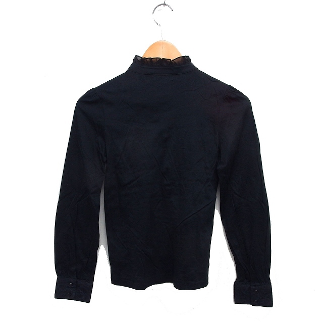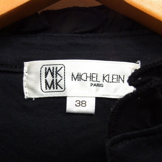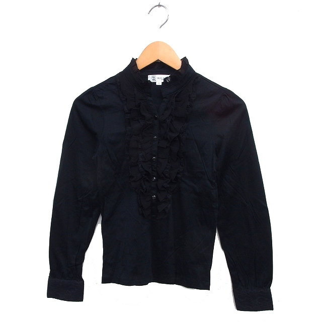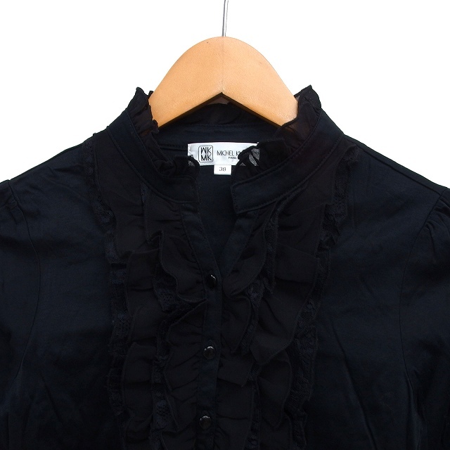 エムケー ミッシェルクラン MK MICHEL KLEIN フリル シャツ ブラウス コットン 綿 ハーフボタン レース 長袖 38 黒 ブラック /NT6