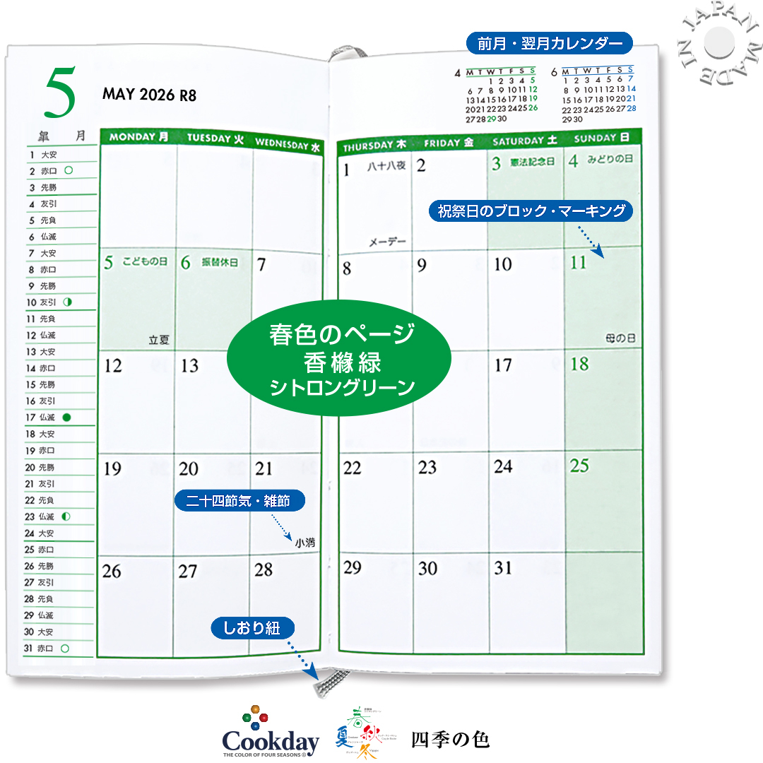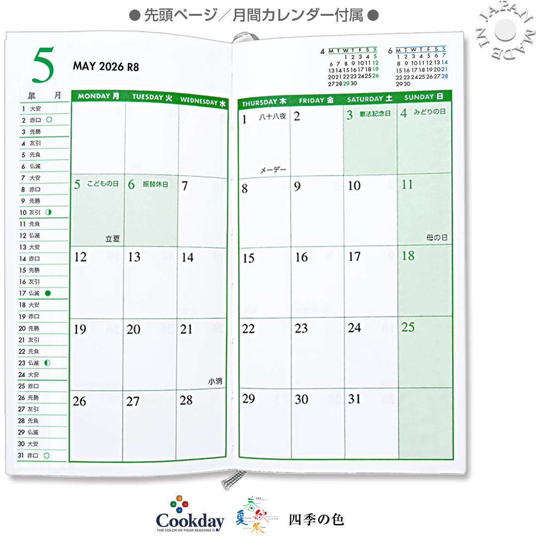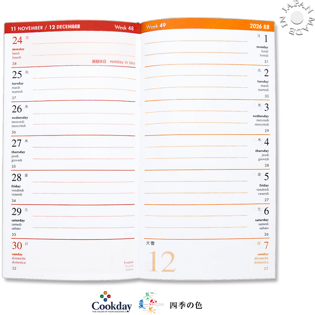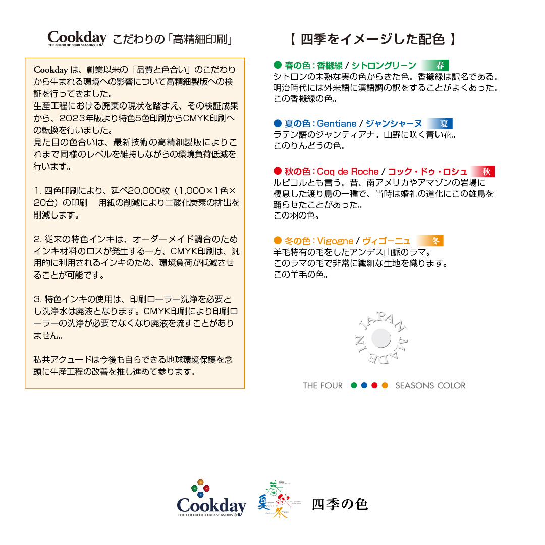 Cookdayダイアリー手帳は » メーカーショップサイト にて詳細を確認できます。