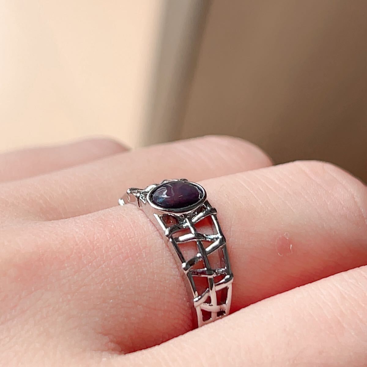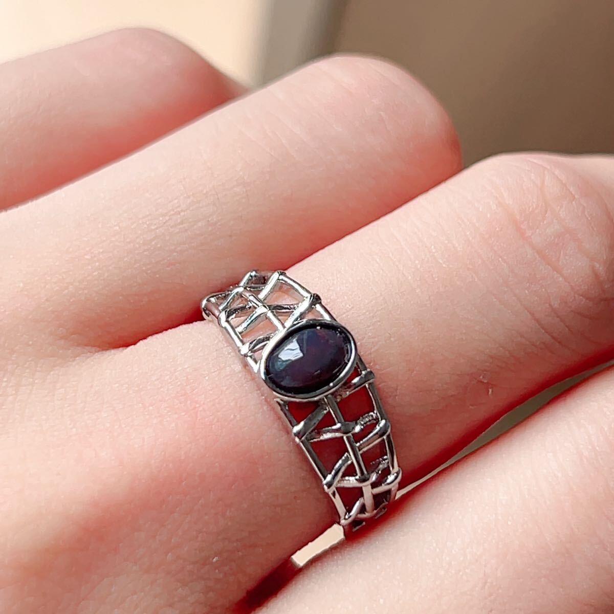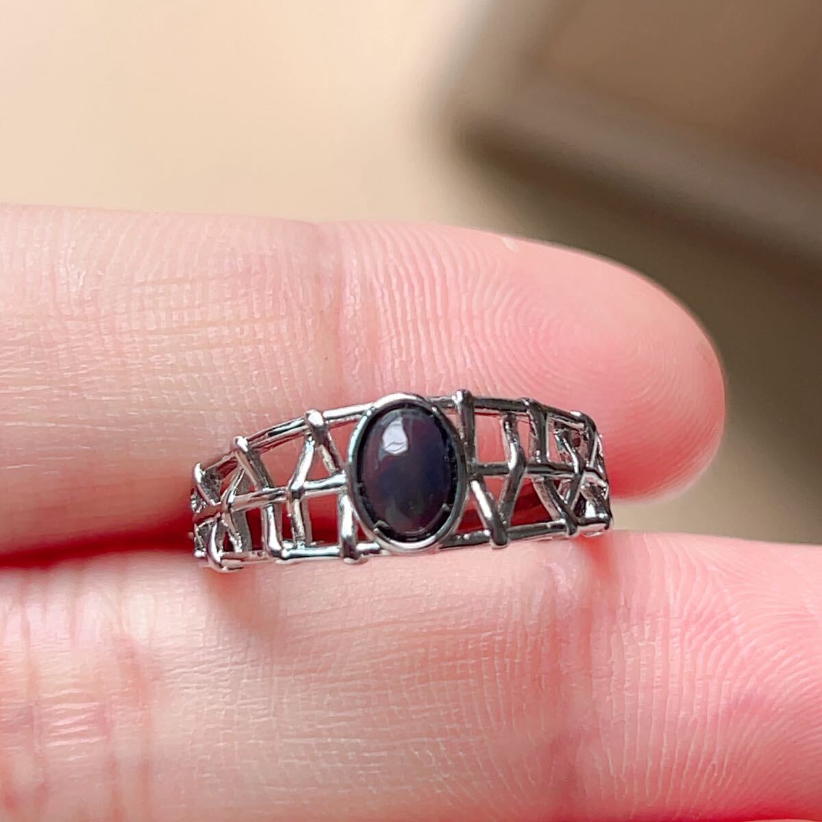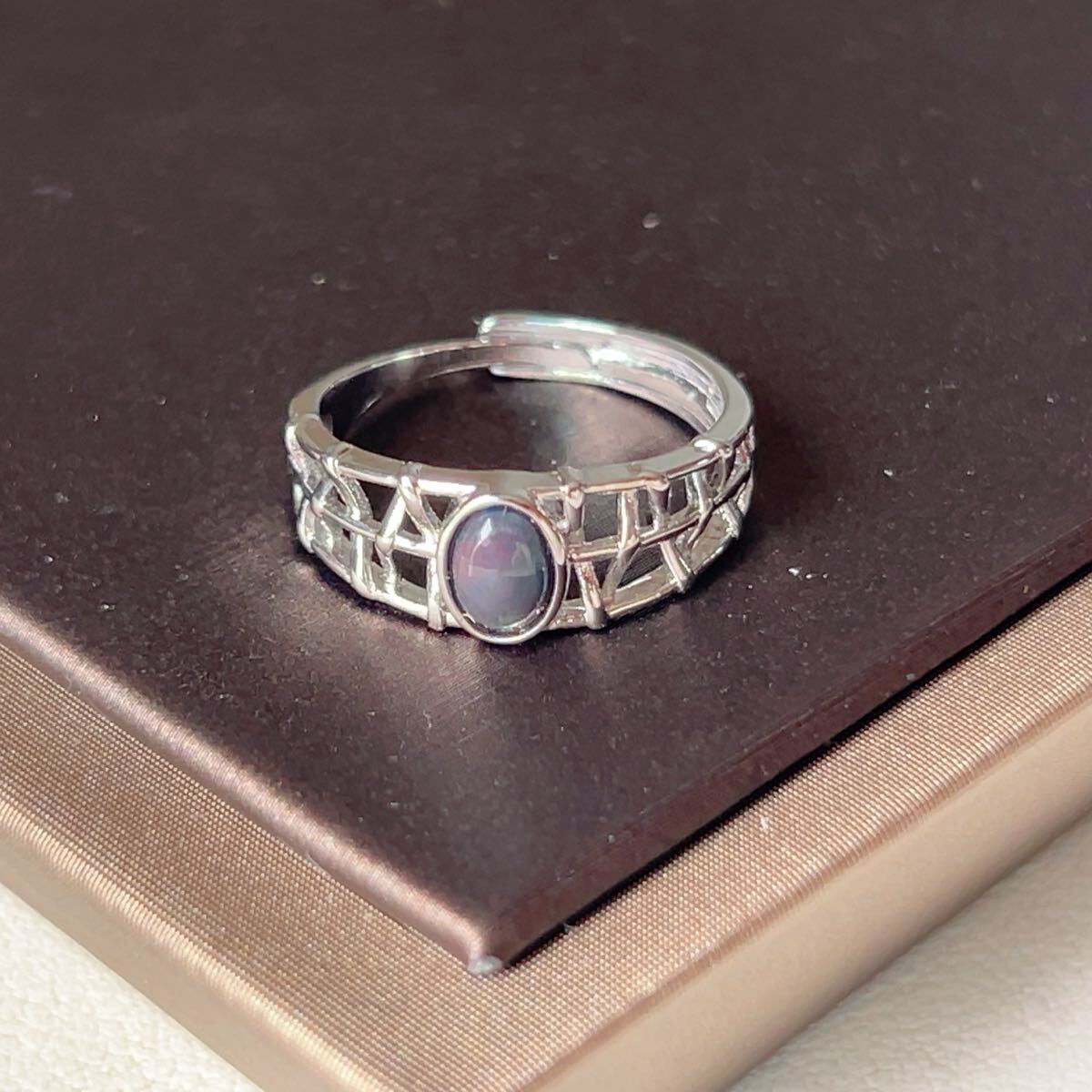 ◇ブラックオパール(Opal)◇指輪◇ リング◇ フリーサイズ◇パワーストーン◇天然石◇巾着袋付き◇プレゼントに040R9413