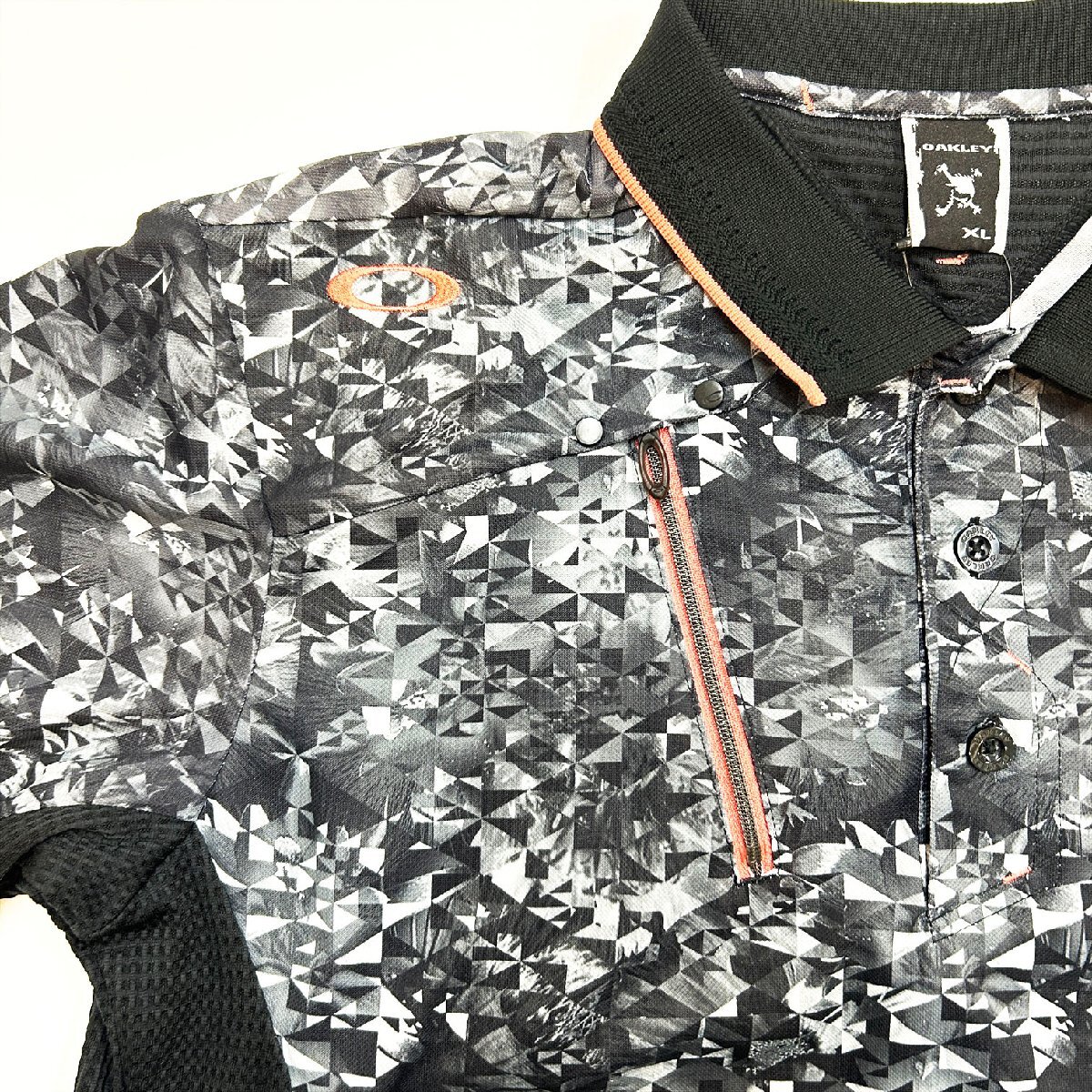 OAKLEY オークリー スカルバトル ジオメトリック ポロシャツ ゴルフウェア 柄 Js9-4