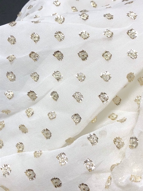 Chloe off-the-shoulder metallic dot blouse white gold silk 結婚式 二次会 2次会