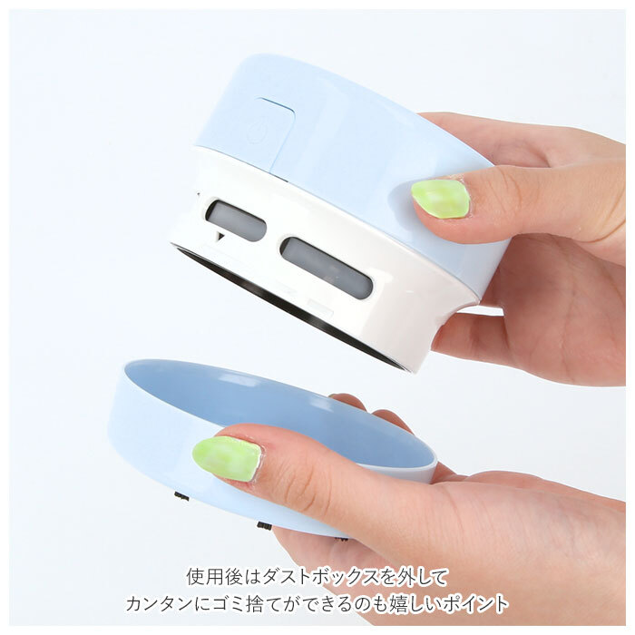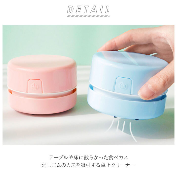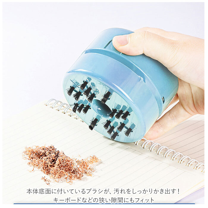 | 商品説明 | ・・テーブルや床に散らかった食べカス、消しゴムのカスを吸引する卓上クリーナー。 ・別売りの単3電池2本使用。 ・本体底面に付いているブラシが、汚れをしっかりかき出す!キーボードなどの狭い隙間にもフィット。 ・使用後はダストボックスを外して、カンタンにゴミ捨てができるのも嬉しいポイント。 ・家庭に1台あると便利な、お掃除アイテム♪ |
