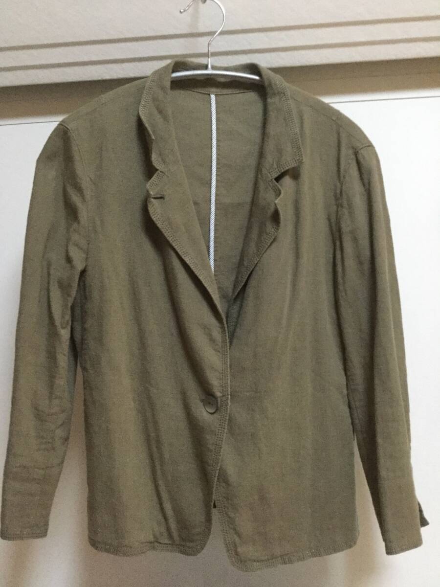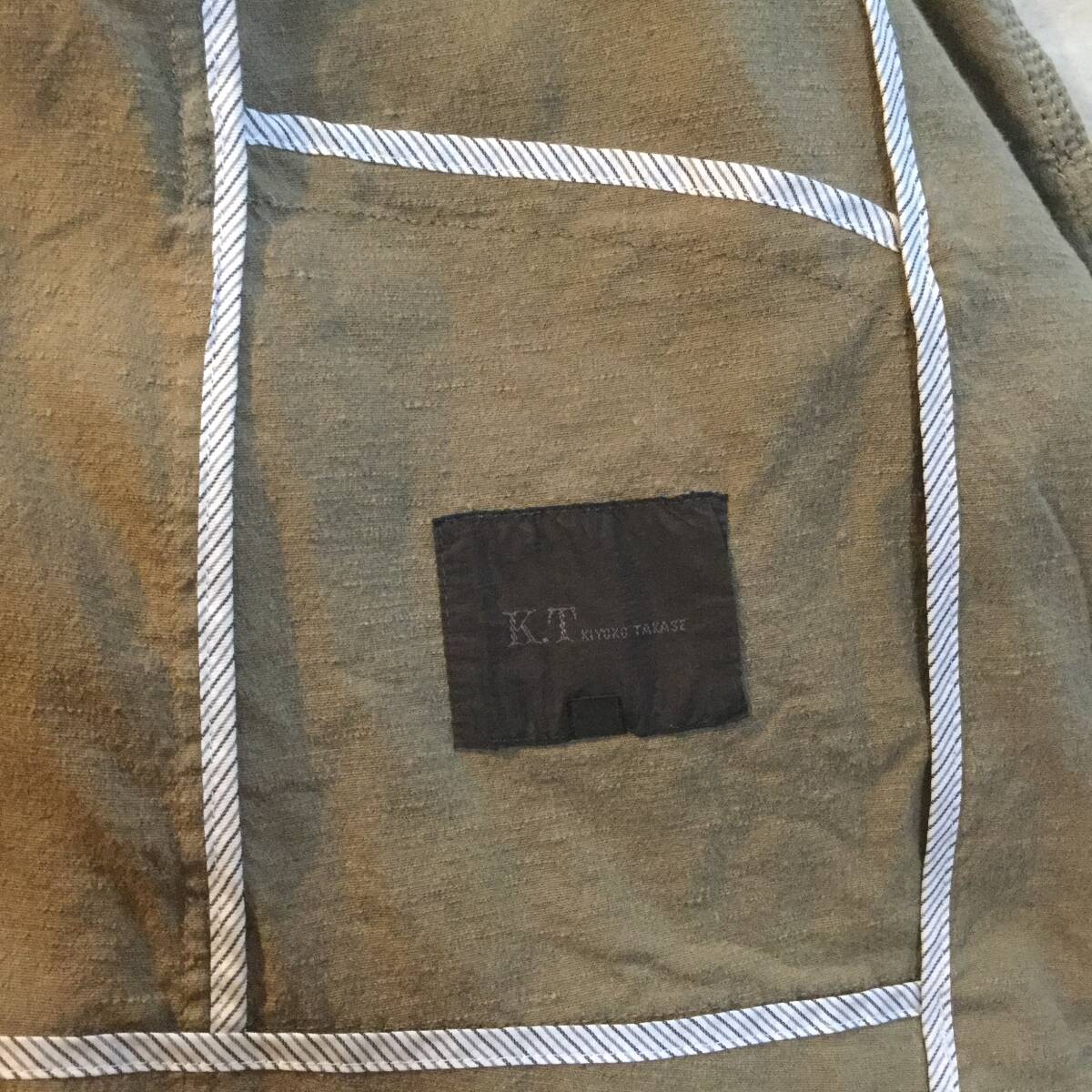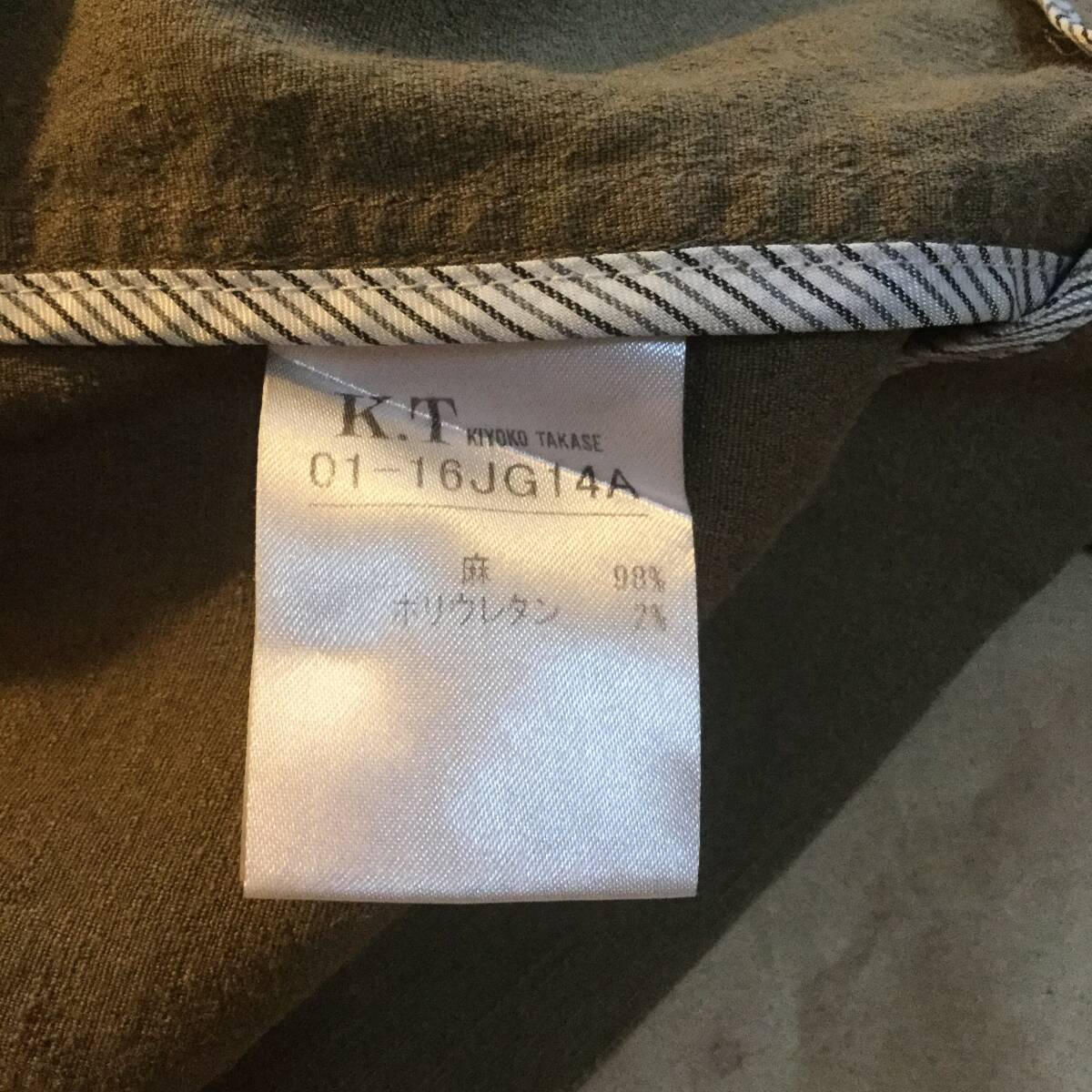 麻 98% K.T KIYOKO TAKASE リネン ケーティー キヨコ タカセ テーラード ジャケット レディース 9 七分袖 カーキ